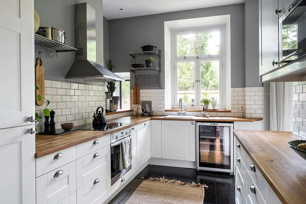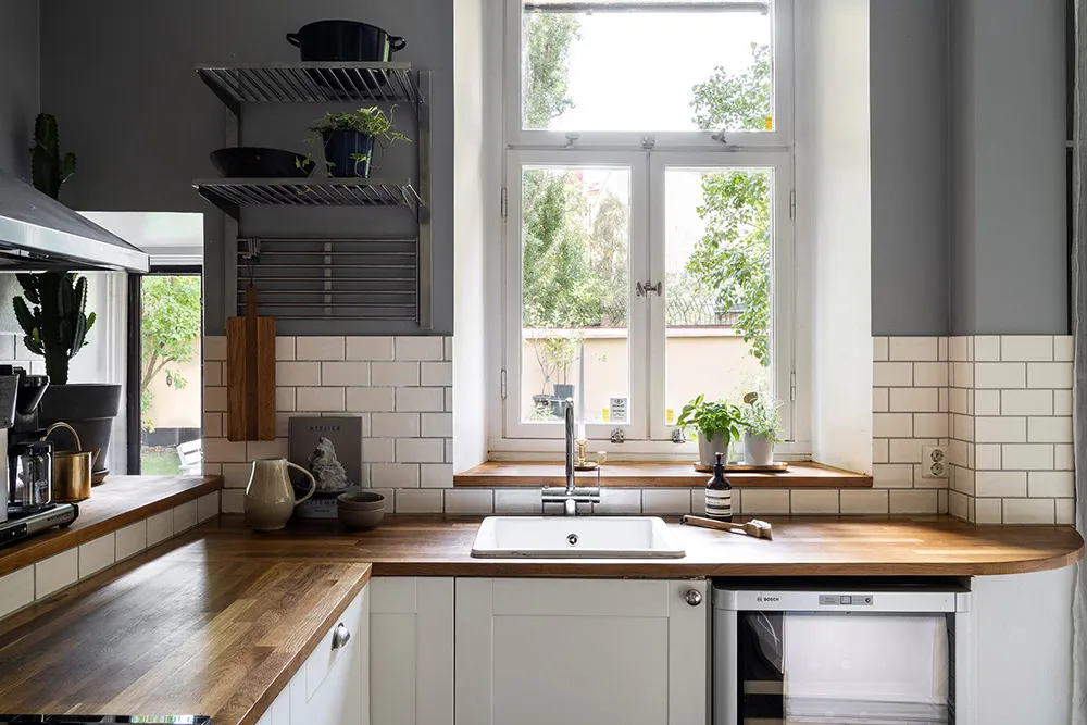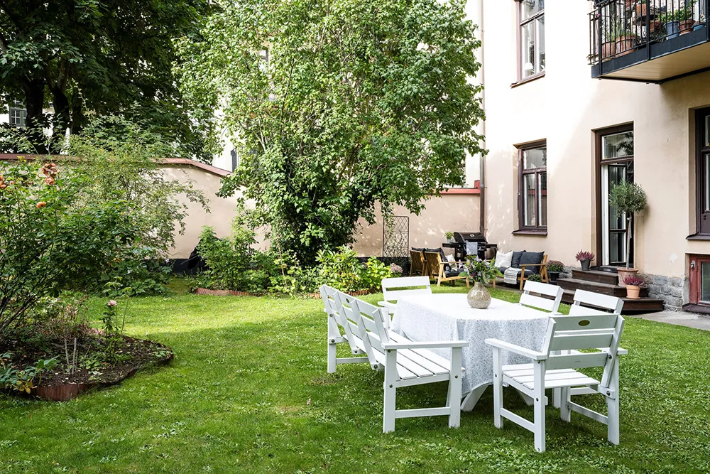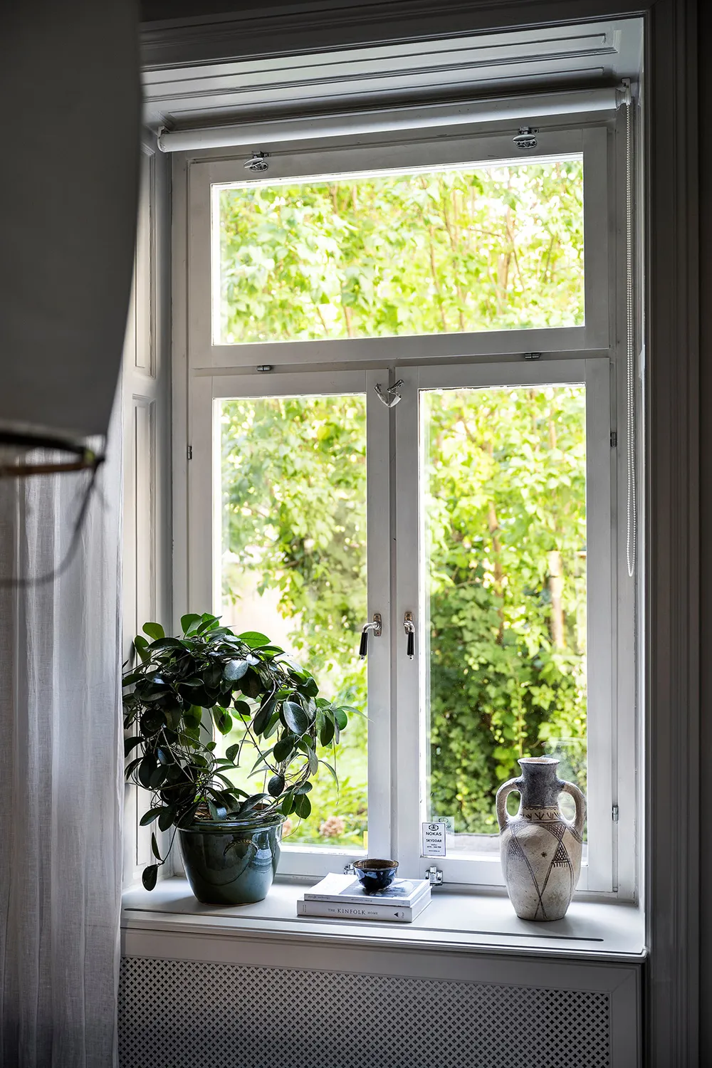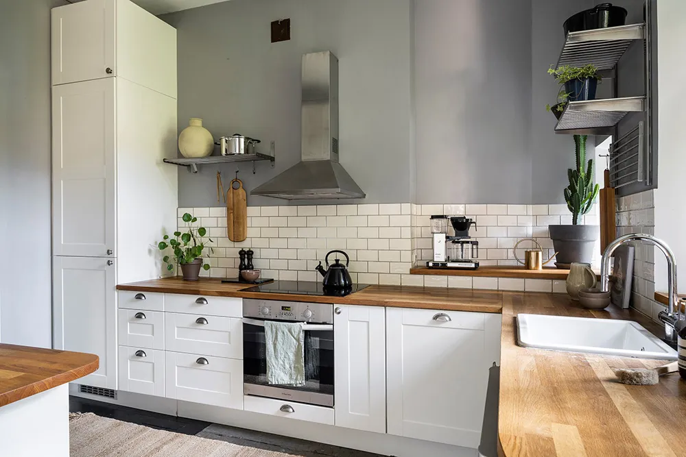 Белый интерьер шведской квартиры с душевным декором и растениями