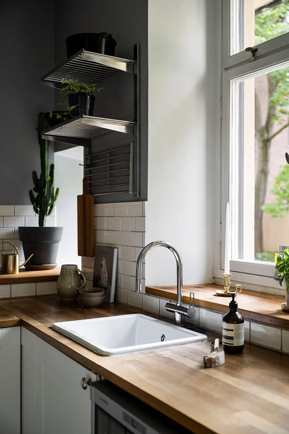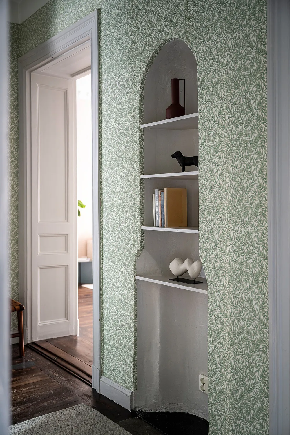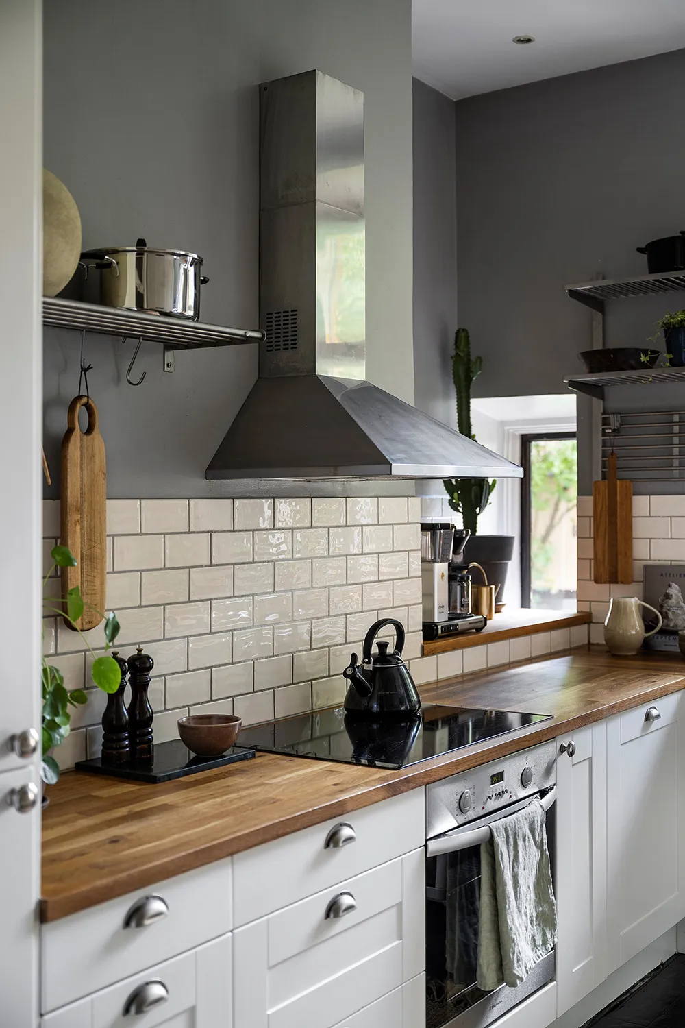 Белый интерьер шведской квартиры с душевным декором и растениями