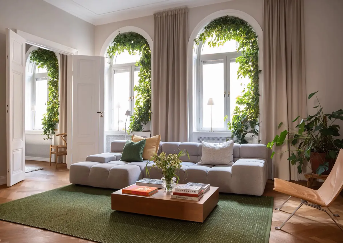 Арочные окна с вьющимися растениями: необычный интерьер в Стокгольме