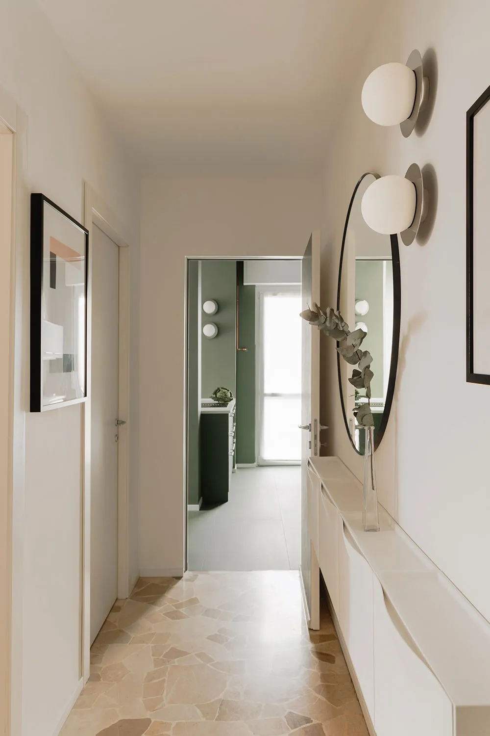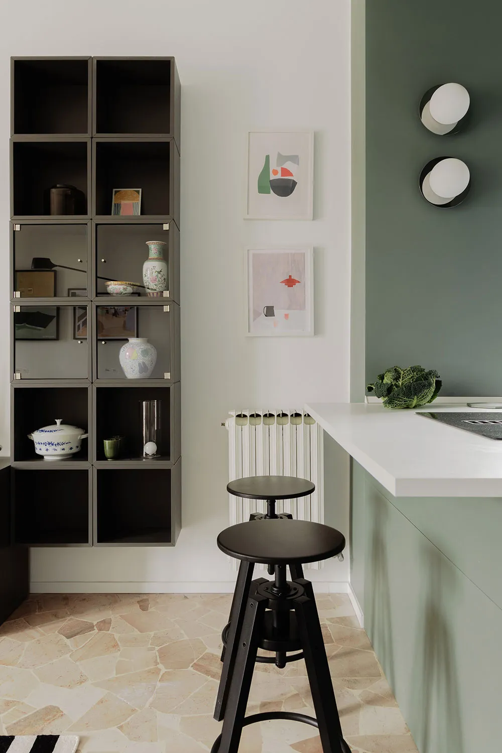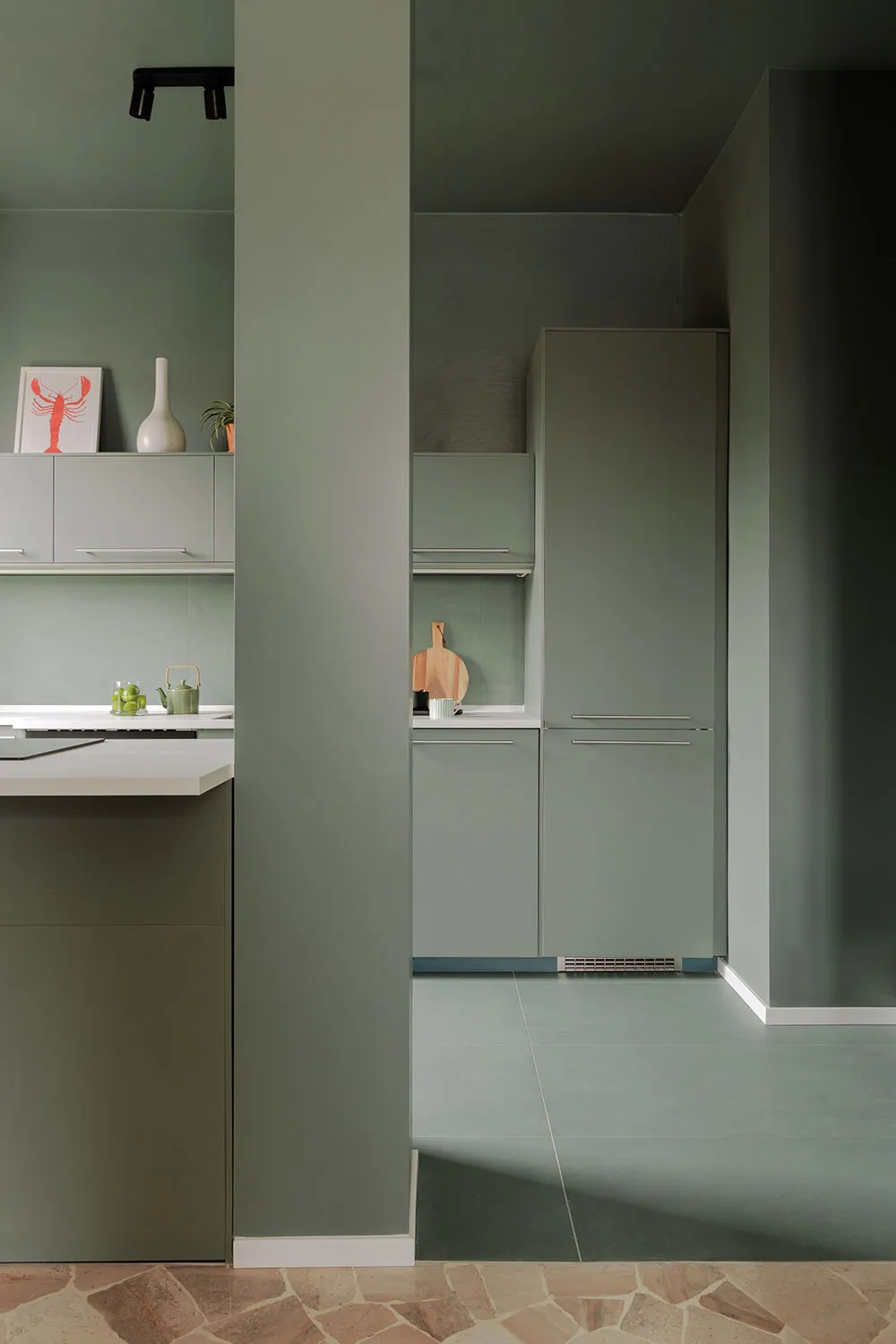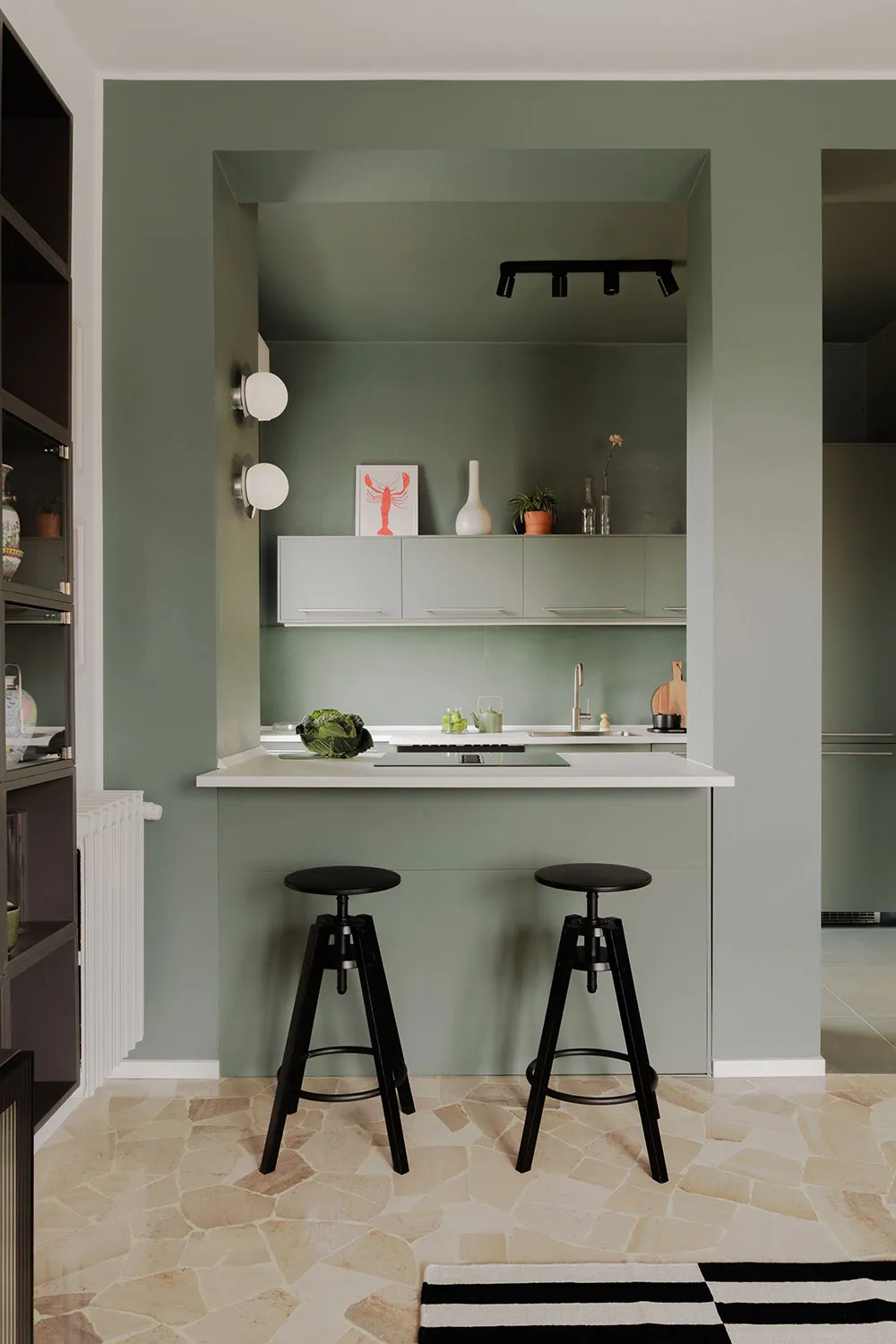Небольшая современная квартира с оливковой кухней в Милане