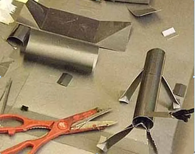 Тепер з'єднайте всі деталі разом. Для цього у тілі-циліндрі потрібно зробити прорізи для лап. Вставляємо в ці прорізи смужку картона, згинуту навпіл.