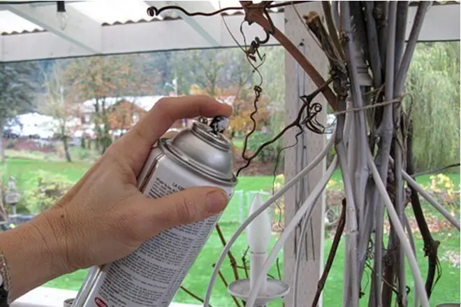 Коли ви надали форму ліхтарю, можна його пофарбувати. Використовуйте фарбу, яка вигідно підкреслить інтер'єр кімнати, в якій буде висіти ліхтар. І не бійтеся експериментувати, можна зробити його яскраво червоним або золотим. А можна пофарбувати і в кілька різних кольорів. Якщо хочете, щоб ліхтар виглядав максимально природно – то фарбуйте лише ліхтар у бежевий колір, до того як почнете прикріпляти до нього гілки. Єдине обмеження – ваша фантазія.