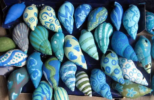 Також не забувайте, що доповнити вже розфарбовані камені зможуть будь-які розфарбовані в тон камені ракушки. В результаті композиція буде ефектною та завершеною.