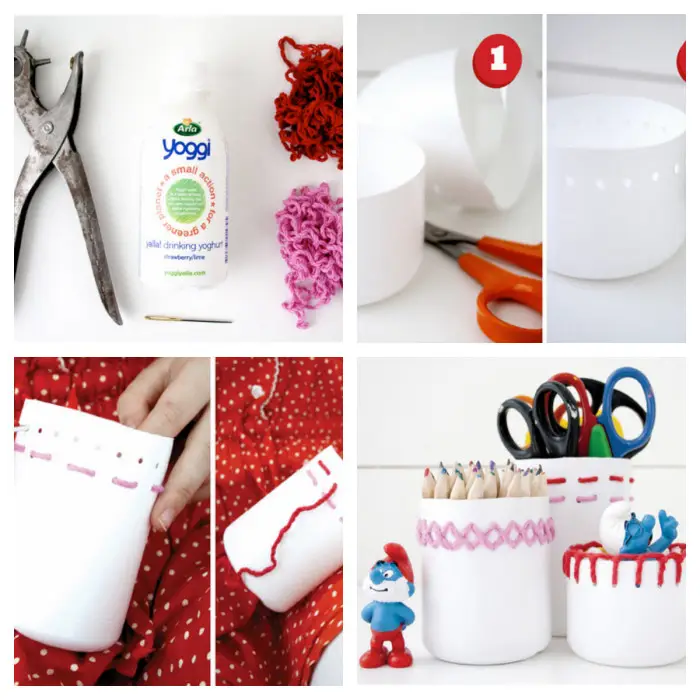 Нитки можна вибирати різних кольорів і робити ними різні малюнки. Підключіть фантазію і поіграйте з висотою вази та різним плетінням ниток. Низьку вазу можна використовувати для резинок і малих деталей, високу - для олівців і ручок.