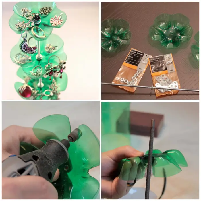 За допомогою дрілки скругліть краї пляшок, щоб вони не могли порізати вас. Під час роботи з дріллю обов'язково надягайте захисні окуляри, малий шматочок пластика може потрапити в око.
