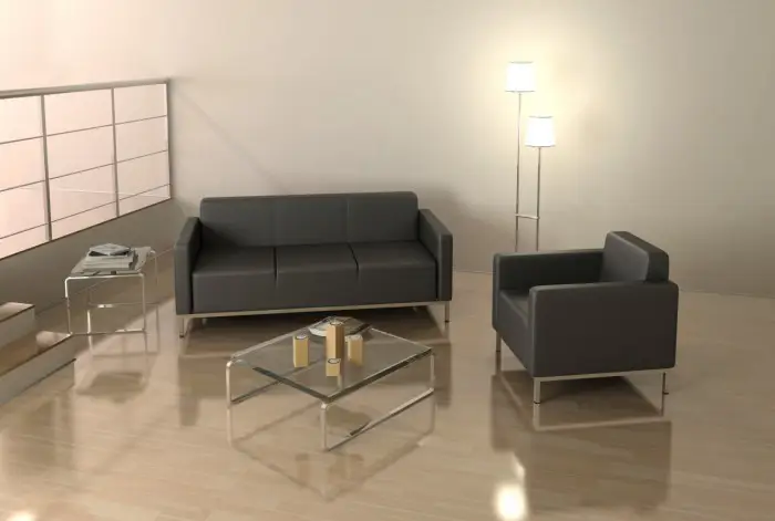 Гостьова зона в квартирах-студіях, квартирах-лофт часто влаштовується в стилі мінімалізм.