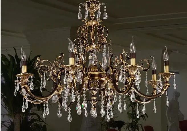 Освітлення в такій гостьовій кімнаті забезпечується масивною ліхтарем і бра: кованими, з застосуванням позолоти, хрусталю або скла.