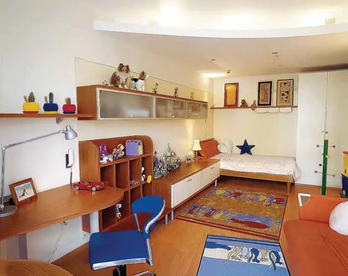 Дизайнерська робота для дітей і підлітків може сильно відрізнятися, бо, по-перше, це дуже часто розділяємий простір кількома особами, а, по-друге, деякі речі повинні бути продубльовані та «прив'язані» до різних спальних місць.
