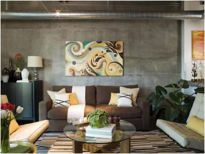 Приховати комунікації – завдання дизайну не у всіх стилях. У урбаністичній гостьовій або гостьовій-лофт з цегляною стіною можуть поєднуватися металеві конструкції, труби, елементи вентиляції під потолком.