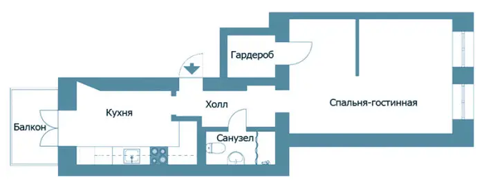 Схема 1 — Планування однокімнатної квартири в Швеції