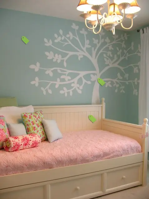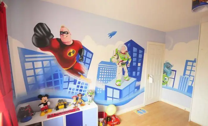 Дитині у дошкільний і молодший шкільний вік можна зробити кімнату в стилі улюбленого мультфільму або з малюнками на стінах улюблених героїв. Після виходу на екрани мультфільму «Тачки», стало модним робити дитячі спальні саме в цьому стилі.