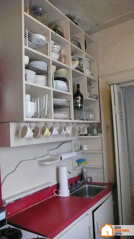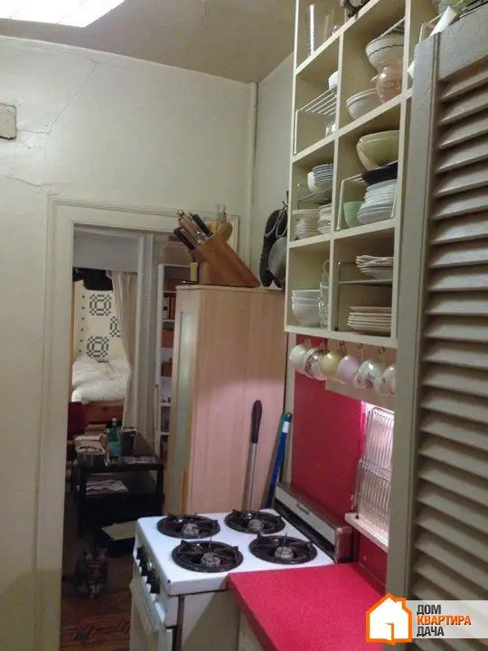 у крошечну раковину поміщалося всього кілька тарілок; кухонне простір було сплановано неефективно, відкриті полиці збиравали на собі багато пилу, усе вироби стояли на відкритому виді; єдиний старий ліхтарик давав мало світла; високе вікно з видом у двір було наполовину закрите кухонним столом; тут не знайшлося місця для посудомийної машини, а холодильнику й плиті було більше 20 років; підлога під раковиною почала тріскатися й ламатися; поверхня стільниці почала портитися; зCEDA почала падати штукатурка.