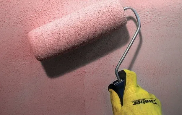 При роботі по гладким бетонним, монолітним основам обробіть очищену поверхню зчеплюючою грунтовкою weber.prim contact для створення шорсткої поверхні. Це дозволить товстому шару штукатурки краще триматися на гладкій основі.
