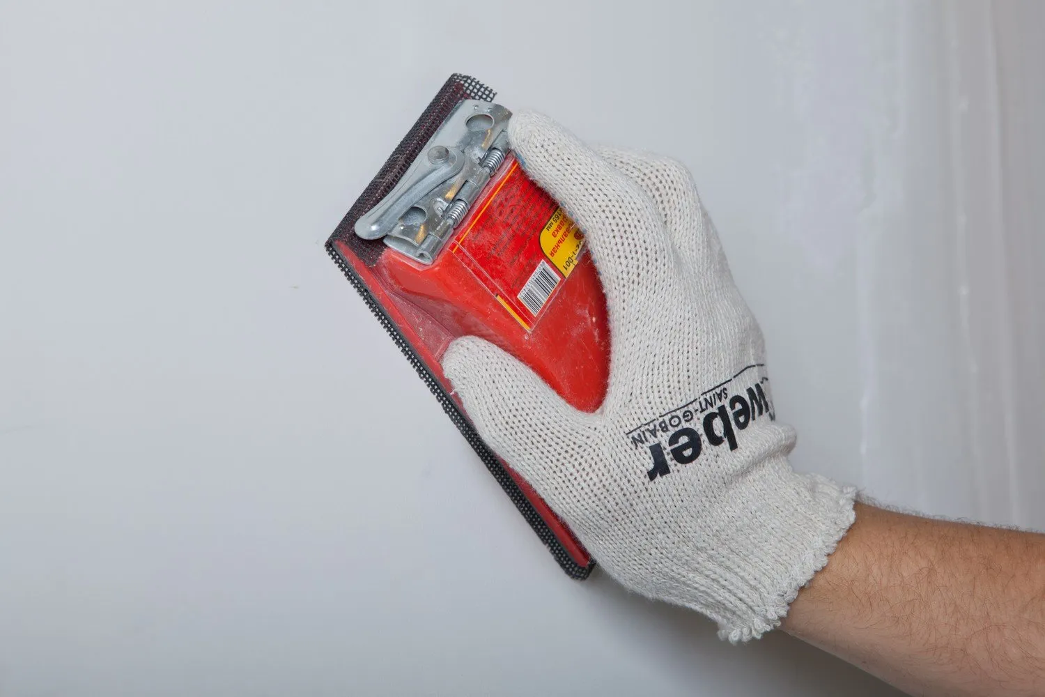 Після висихання обробіть поверхню шпаклювання за допомогою шліфувальної папери та не забудьте обезпилити. Обов'язково загрунтуйте стіни перед фарбуванням: це дозволить скоротити вбиральну здатність стіни, підсилити поверхню та забезпечити необхідну адгезію фарби.