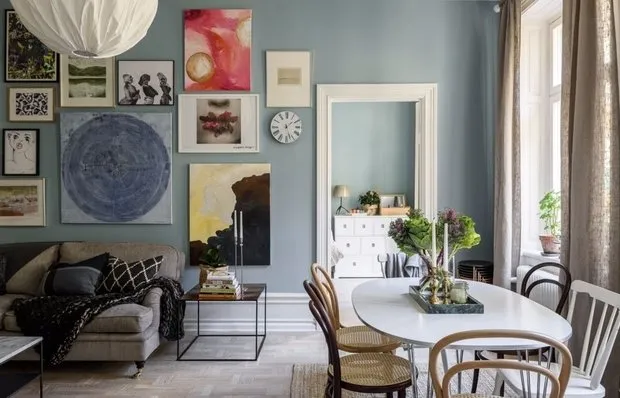 Двушка в Швеції з блакитними стінами та бібліотекою