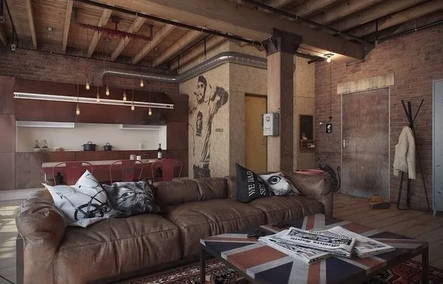 Червоний або білий цегла, бетон і текстура дерева в стилі лофт - чорна стельна необхідна, як завершальний штрих.