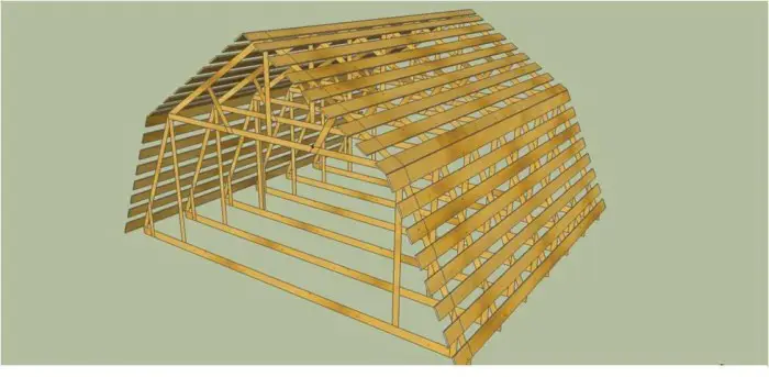 Стропильна система складається з: мауэрлата, стропил, конька, підкосів, обрешітки. Крило збирається з: пароізоляційної плівки, теплоізоляції, гідроізоляції, контробрешітки, обрешітки, покриття крила.