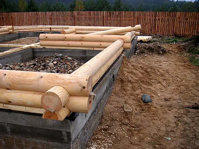 Основою срубу є фундамент. Тип фундаментної закладки визначається на етапі проектування з урахуванням ґрунту, рівня ґрунтових вод, ваги майбутньої будівлі, необхідності в підвалі.