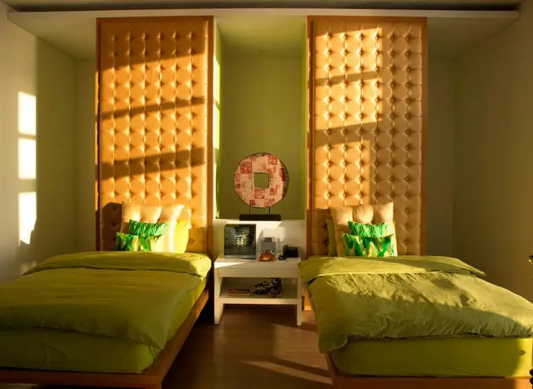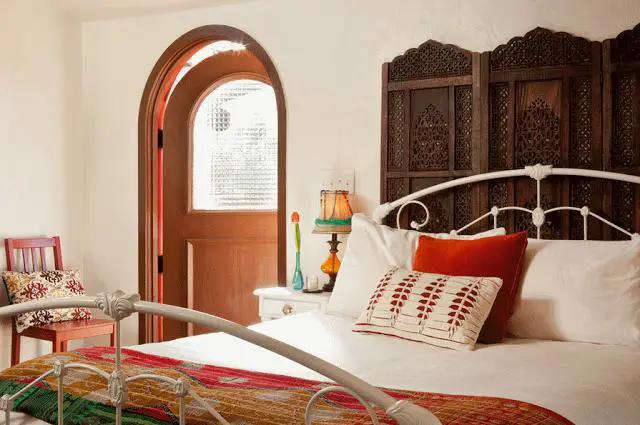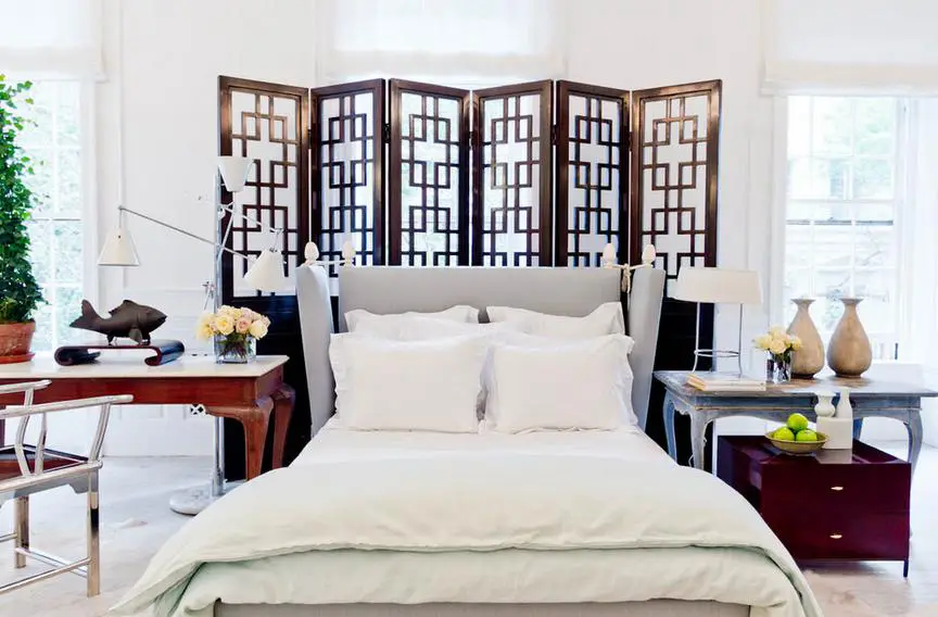 One of the most striking ways to decorate a bed is using a screen at the headboard. This unusual technique is unlikely to go unnoticed. It particularly complements Eastern-style interiors.