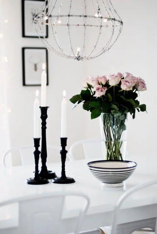 For those who are bolder but still not ready to pick up a roller or repaint walls, or go shopping for a new table, decorative elements can definitely add monochrome style to a white interior.