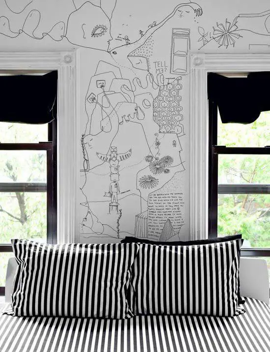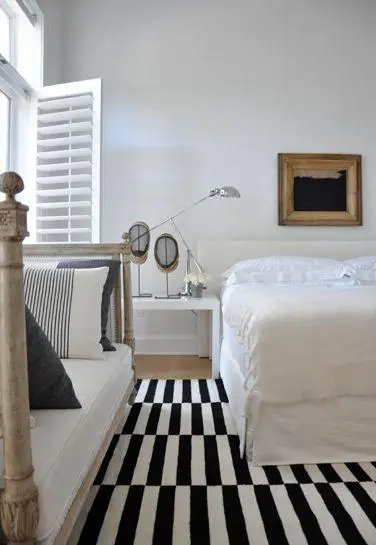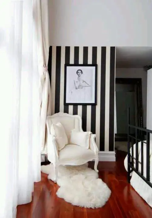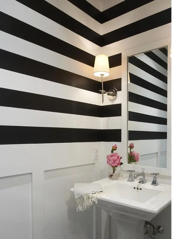 If you're not afraid of combining two colors in one area (whether a wall or furniture), stripes are a great choice. Just don’t overdo it. Try to focus on one element: either paint the walls, or buy new furniture or decor.