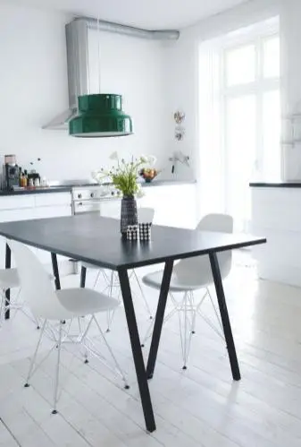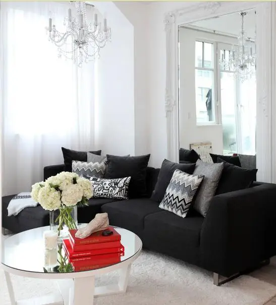 Try marking a zone with black to make it visually appealing. For example, add a black dining table in the dining area, or a black sofa in the living room. A black bed in a white interior will also look very striking.