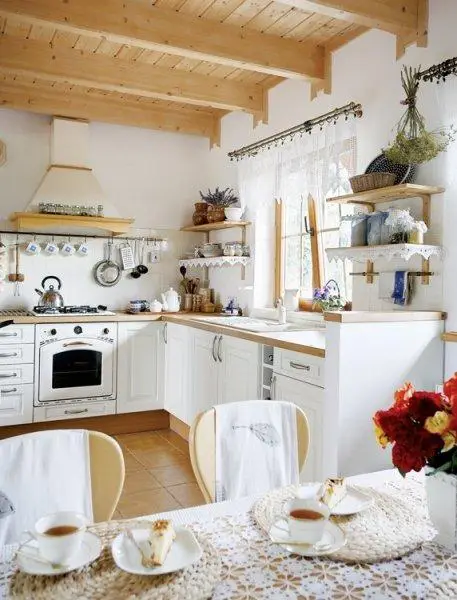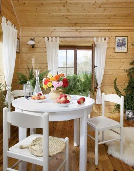 2. Об’єм білого кольору зазвичай здатен візуально "освітлити" і розширити приміщення. Але тут саме той випадок, коли це не потрібно. Усі білі акценти нагадують нам про середземноморський повітряний і дуже легкий стиль. Не бійтеся розміщувати в дачному будинку білі шторки, постільне білизну, серветки. Зокрема, сьогодні існує величезна кількість засобів, що дозволяють видалити найтяжчі плями.