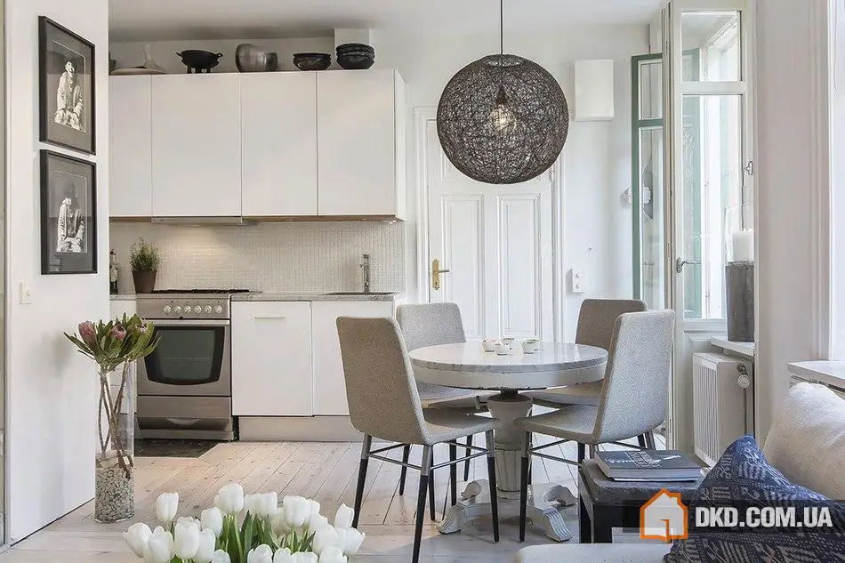 Світла студія площею 34 кв.м. у скандинавському стилі — це уютний та просторовий інтер'єкт з мінімальним числом елементів декору.