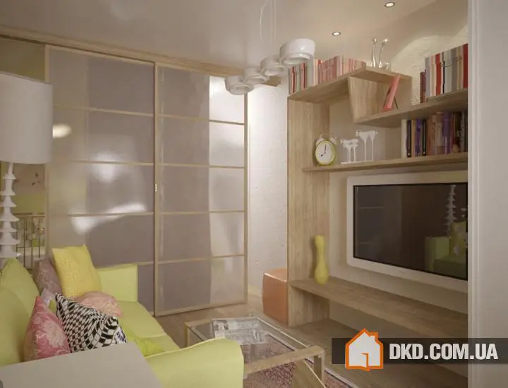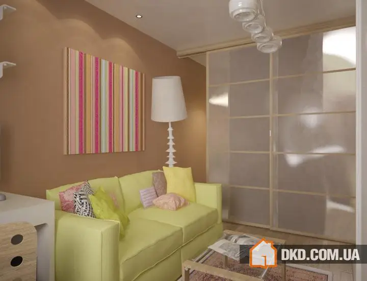Проект однокомнатної квартири для сім'ї з маленьkim дитиною, 34 кв.м.