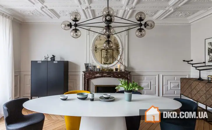Французький дизайн вражає, і з часом стає все більш елегантнішим і прекрасним. Ця квартира — сучасна версія традиційних французьких апартаментів. У інтер'єрі все те саме, що й раніше — молдинги, паркет елочкою — але в сучасному стилі з модним мінімалістичним мебллю та оформленням. Просто чудово.