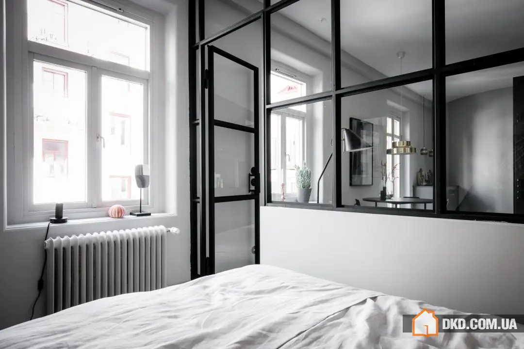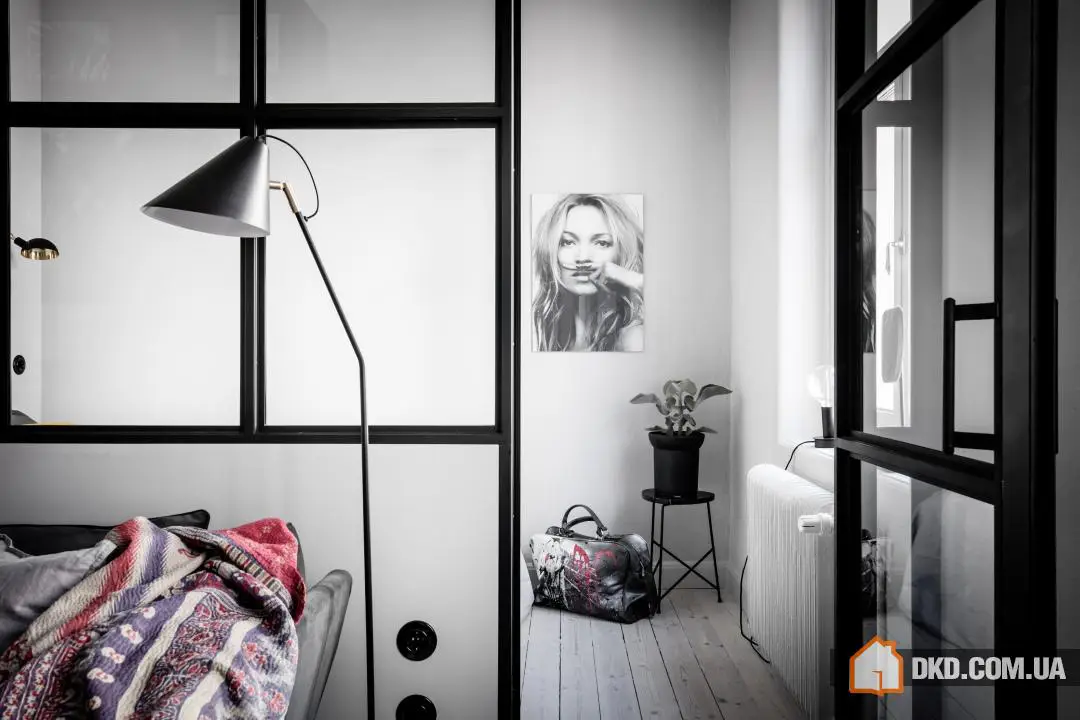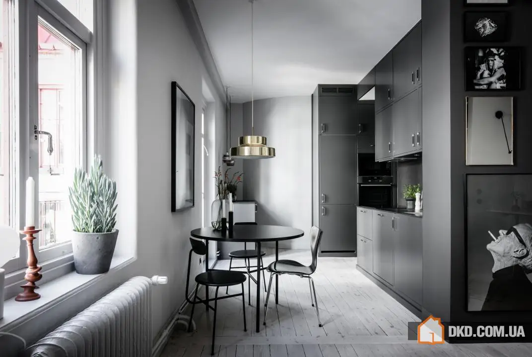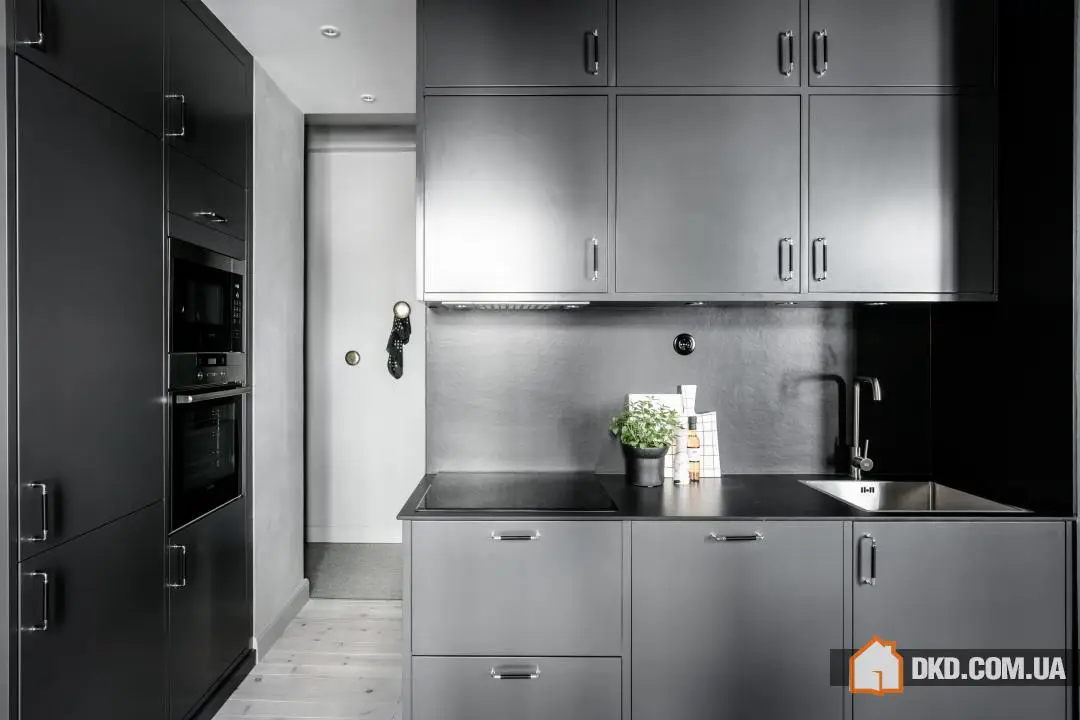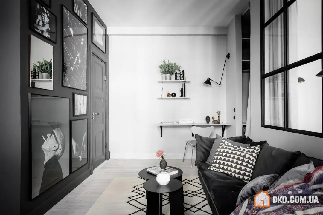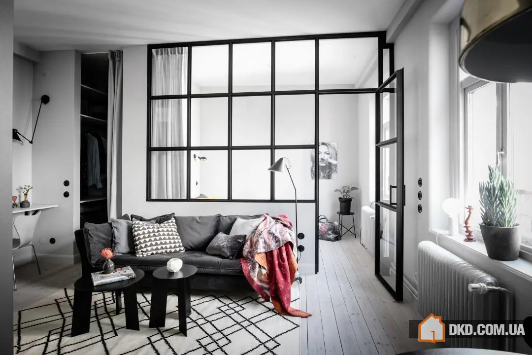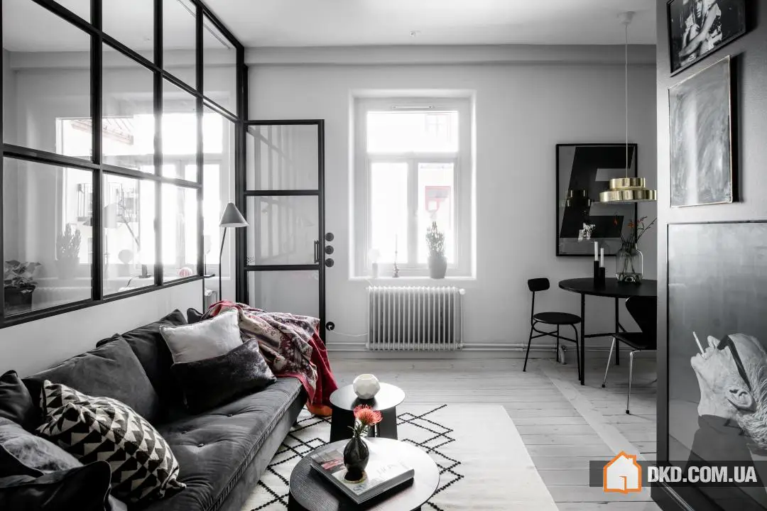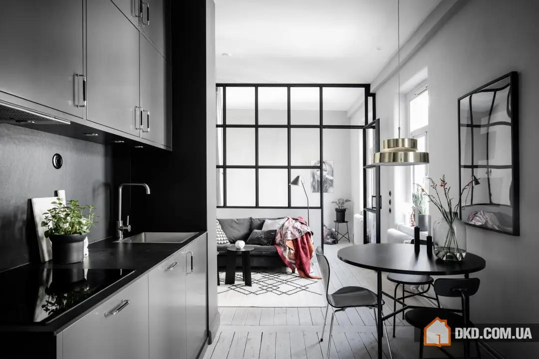До ремонту ця невелика квартира в Швеції представляла собою одну велику кімнату площею 39 м². Завдяки встановленню кількох сплошних і легких перегородок, простір перетворився на компактну двокімнатну квартиру з однією спальней. За стилем усе дуже строго — чорно-біла гама і максимально рівні та прямі поверхні — справжня Скандинавія!