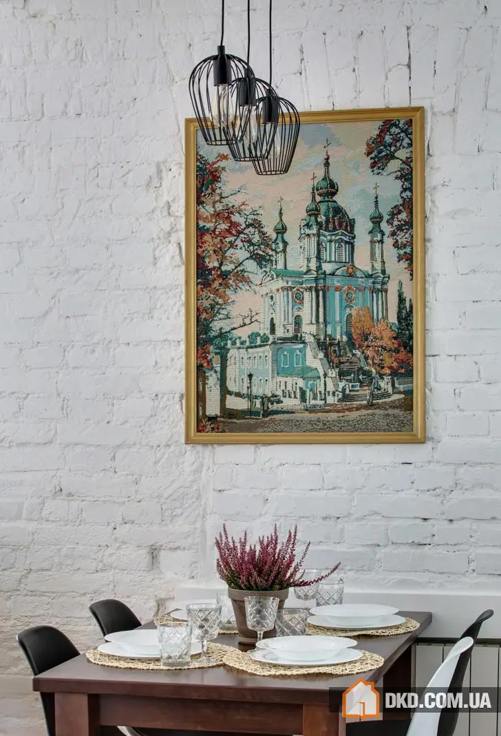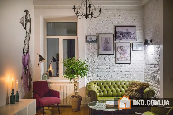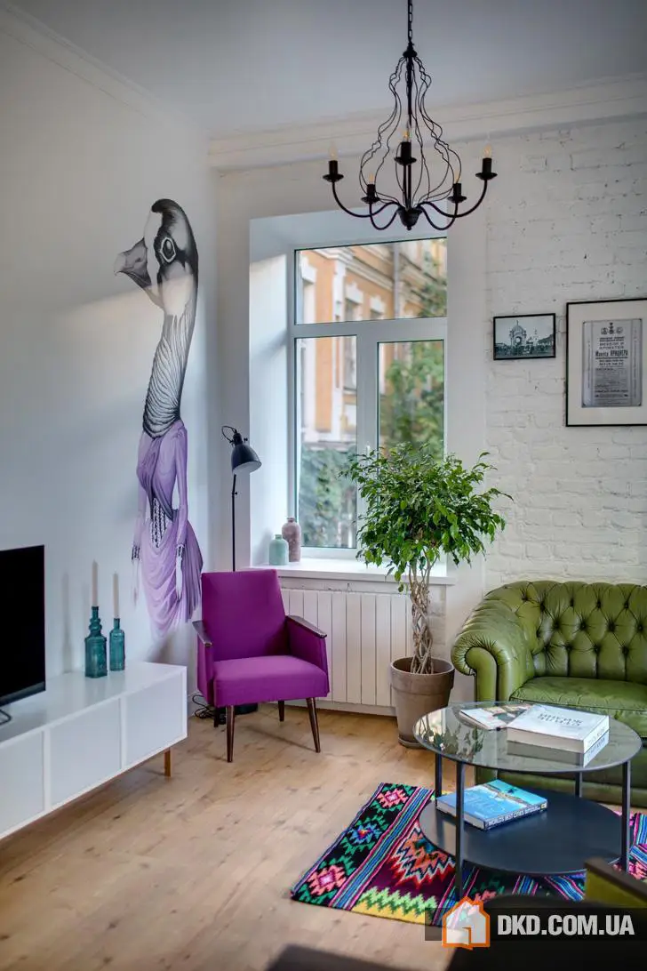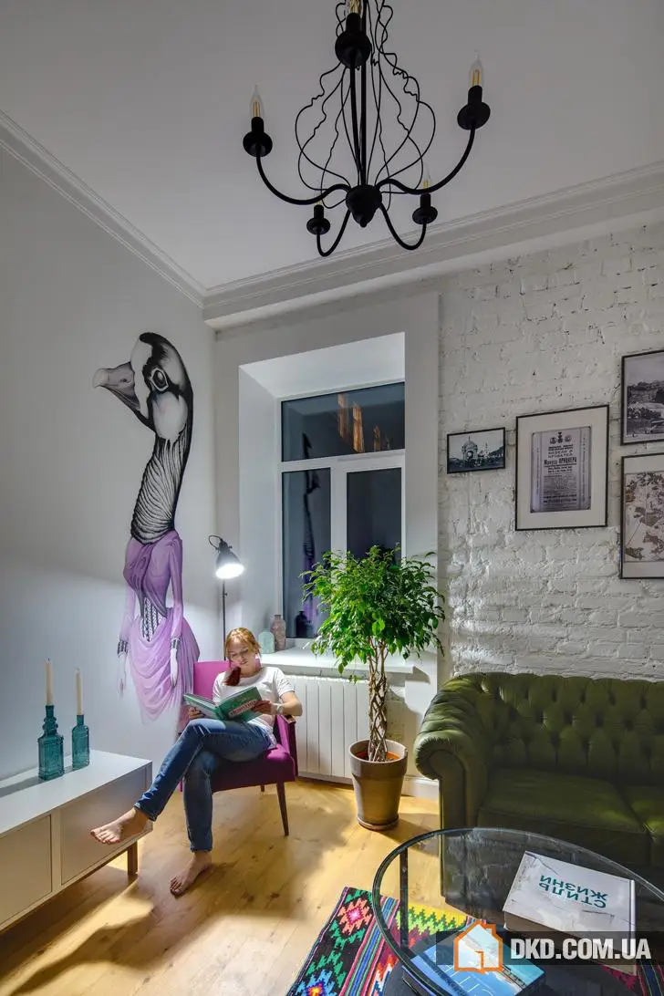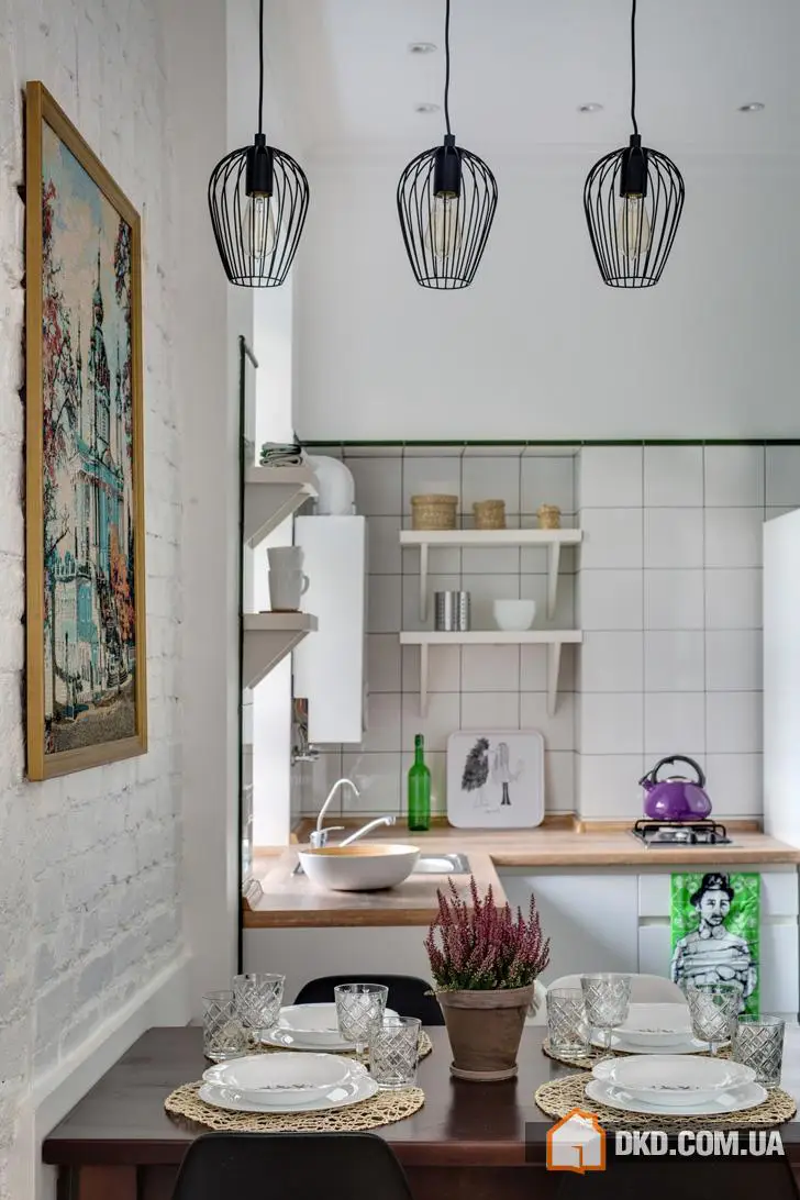 До розробки дизайну цієї орендованої квартири площею 42 кв. м в Києві дизайнер Майя Баклан підійшла з усією серйозністю — їй дуже хотілося довести, що навіть при обмеженому бюджеті та в скорочений термін можна створити якісний і красивий інтер’єр. Перед початком робіт житло було в плачливому стані — квартира в старому будинку на Підольській споруди 1896 року потребувала капітального ремонту та великих перестановок. У новому інтер’єрі майже немає готових рішень з меблів: деякі предмети виготовлені на замовлення, інші знайдені на різних барахолках, а також є сміливі дизайнерські рішення, наприклад, веселі стінники на стельові в спальні. В результаті вийшло дуже милим і практичним!