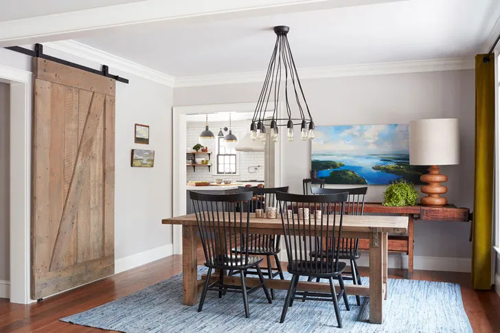 Перетворення старого будинку це завжди виклик, але ще більший виклик — коли старий будинок ще не побудований. Саме з такою ситуацією зіткнулася дизайнер Кристина Крэстин. Замовники замовили будівництво будинку в стилі 18 століття, а перед Кристиною поставили завдання зробити новий інтер’єр у духу стародімної ферми. Дизайнер обрала максимально природні кольори: відтінки натурального дерева, синій, сірий; салатовий і теракотовий для кольорових акцентів. Цікаво, що деякі предмети тут дійсно можна вважати старовинними: масивні розсувні дерев’яні двері, наче повидавші види стілець у кабінеті, раковина в стилі минулих століть. Цей проект — чудовий приклад того, як з нуля можна відмінно стилізувати будь-який інтер’єр!