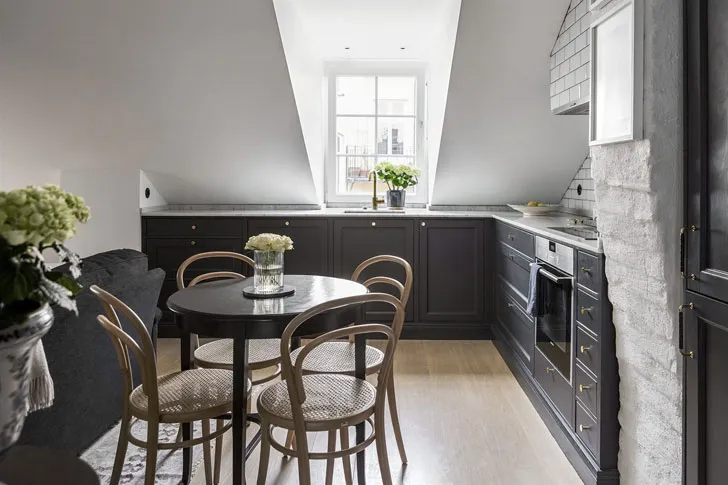 Іноді для щастя багато не потрібно — лише невеличку квартиру на 34 кв. м на останньому поверсі під дахом, зі скошеними стелями та затишною невеличкою кухнею. Ніби ти у бабусі на дачі засів на чердак і живеш там за своєю волею. Саме такі емоції викликає ця чарівна мансардна квартира в Стокгольмі, де все чудово. Приємних натхнення!
