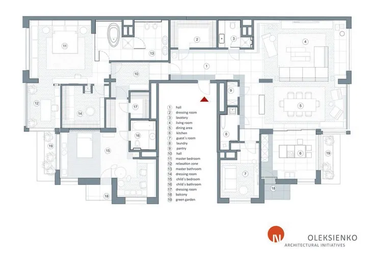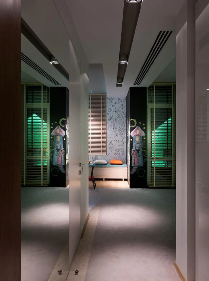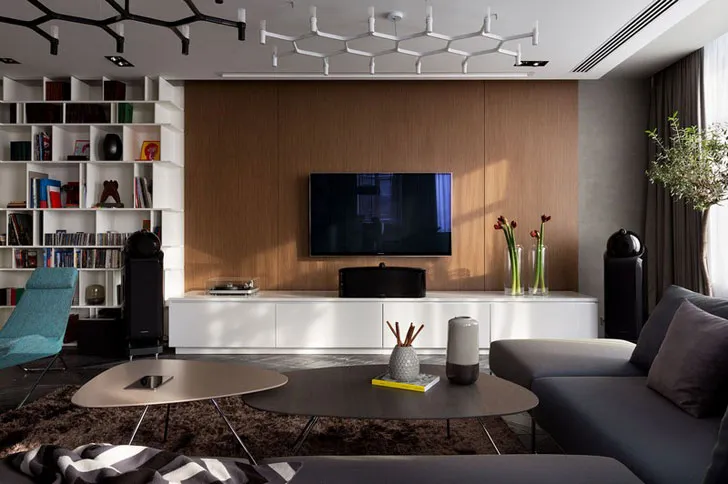 Своє ім’я «читати, слухати, спостерігати» проект просторної сучасної квартири в Києві отримав від авторів не просто так. Усе через те, що замовники — молодша сім'я з дітьми — захоплюються музикою та читанням, і загалом є прихильниками мистецтва в різних проявленнях.