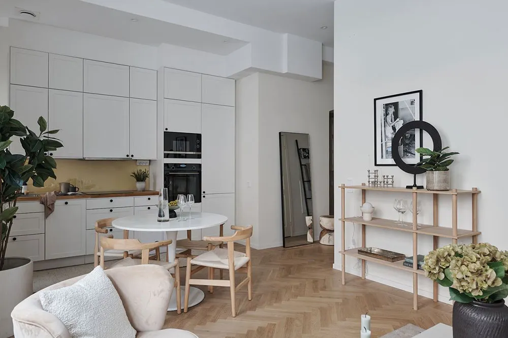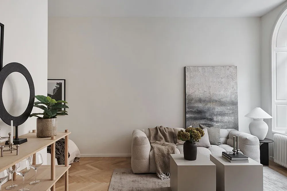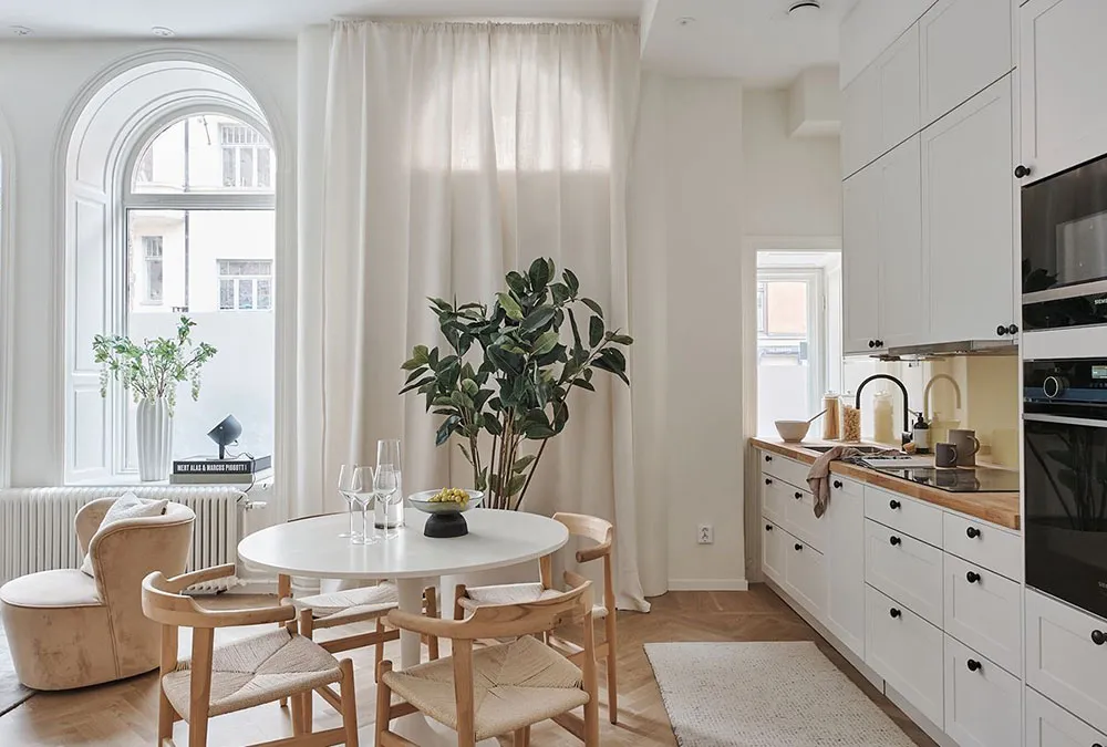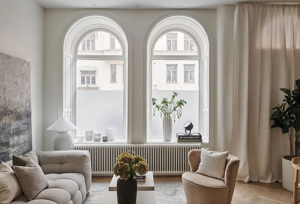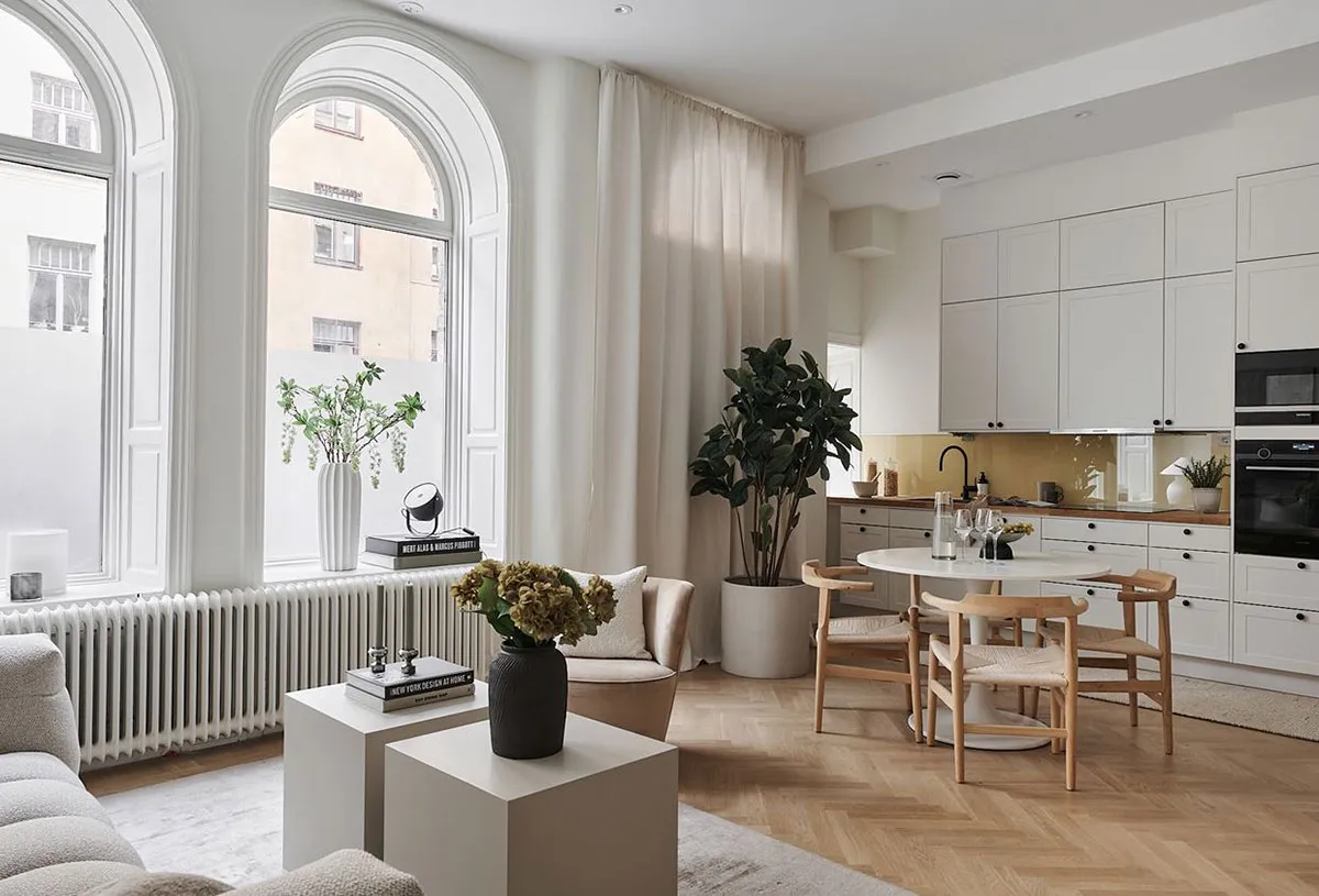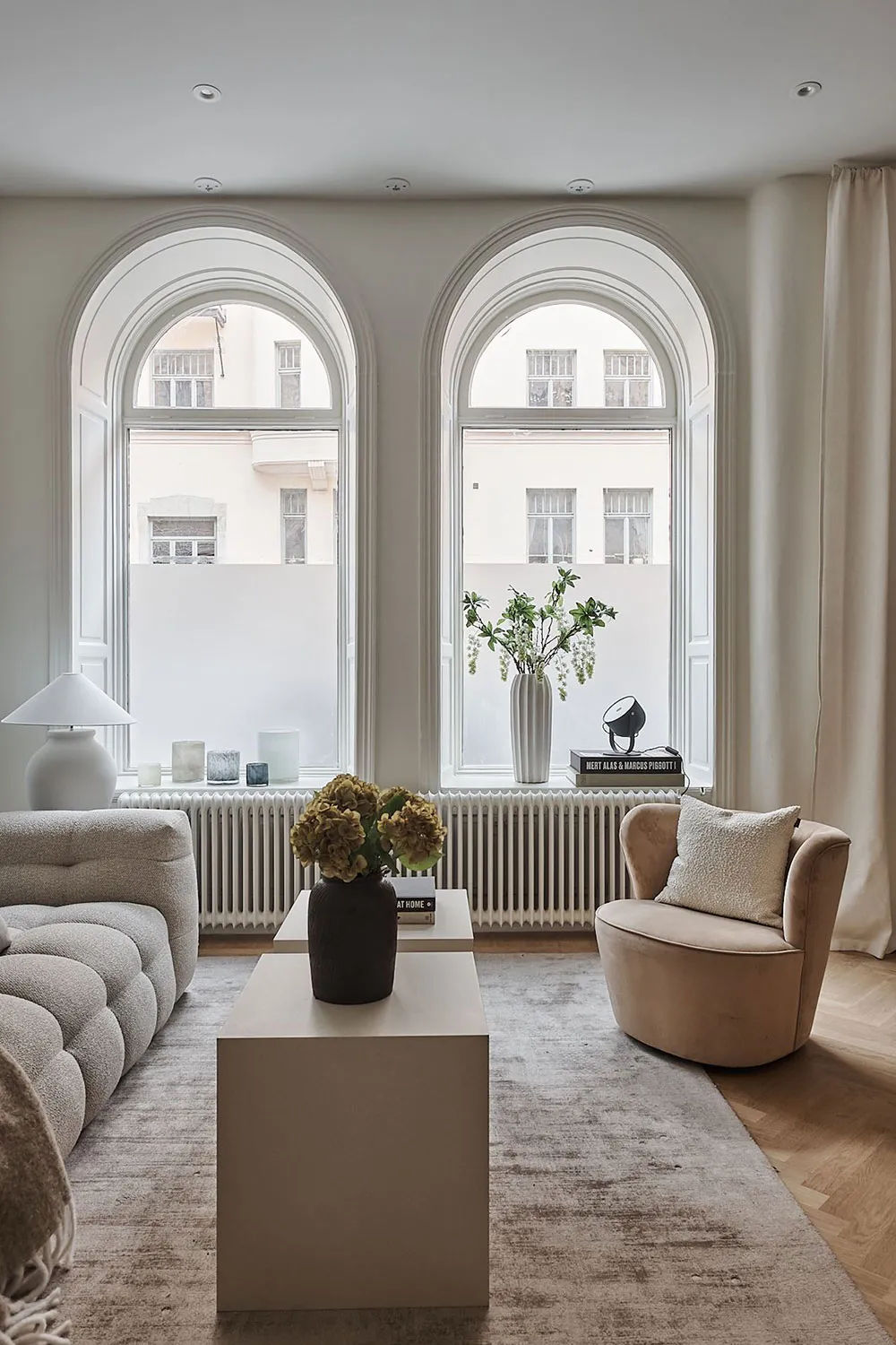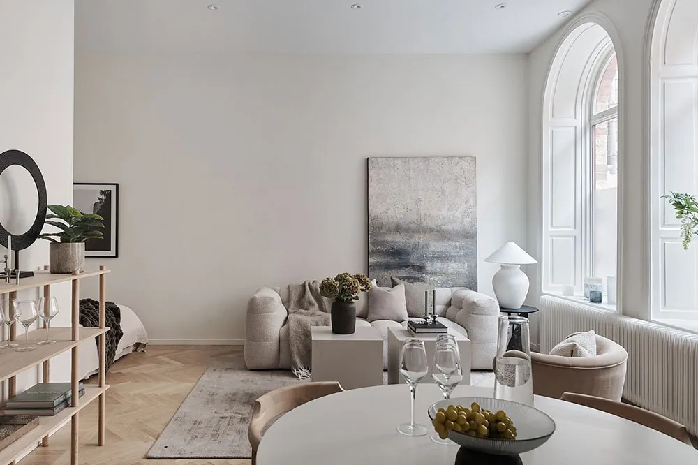 Арочні вікна, високі стелі та open-space: ніжна студія-квартира в Стокгольмі (42 кв. м)