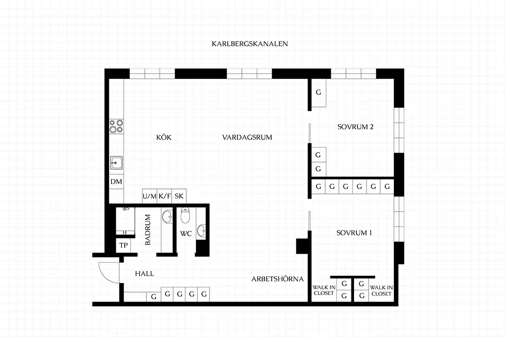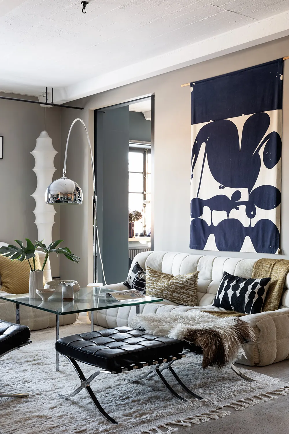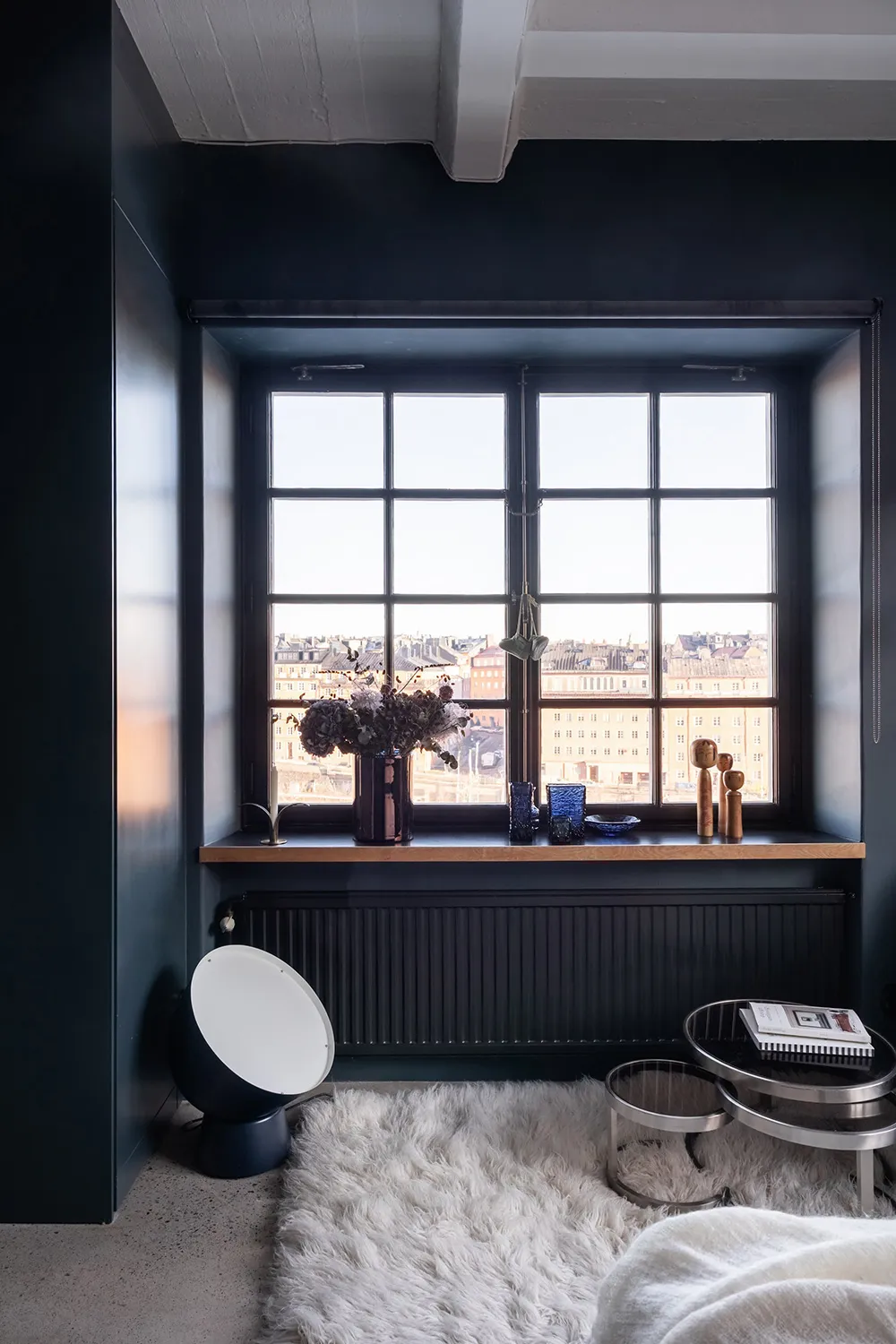 Великі вікна, балки на стелі, відкрите простір гостинної — з першої фотографії зрозуміло, що ця квартира в Стокгольмі розташована в не дуже звичайному будинку.
