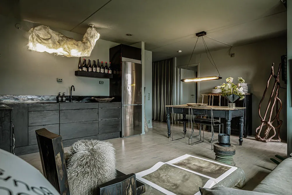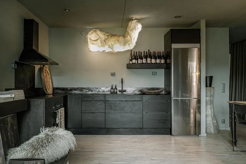 Елегантні апартаменти в Ольборзі з монохромними інтер'єрами та незвичайною кухнею