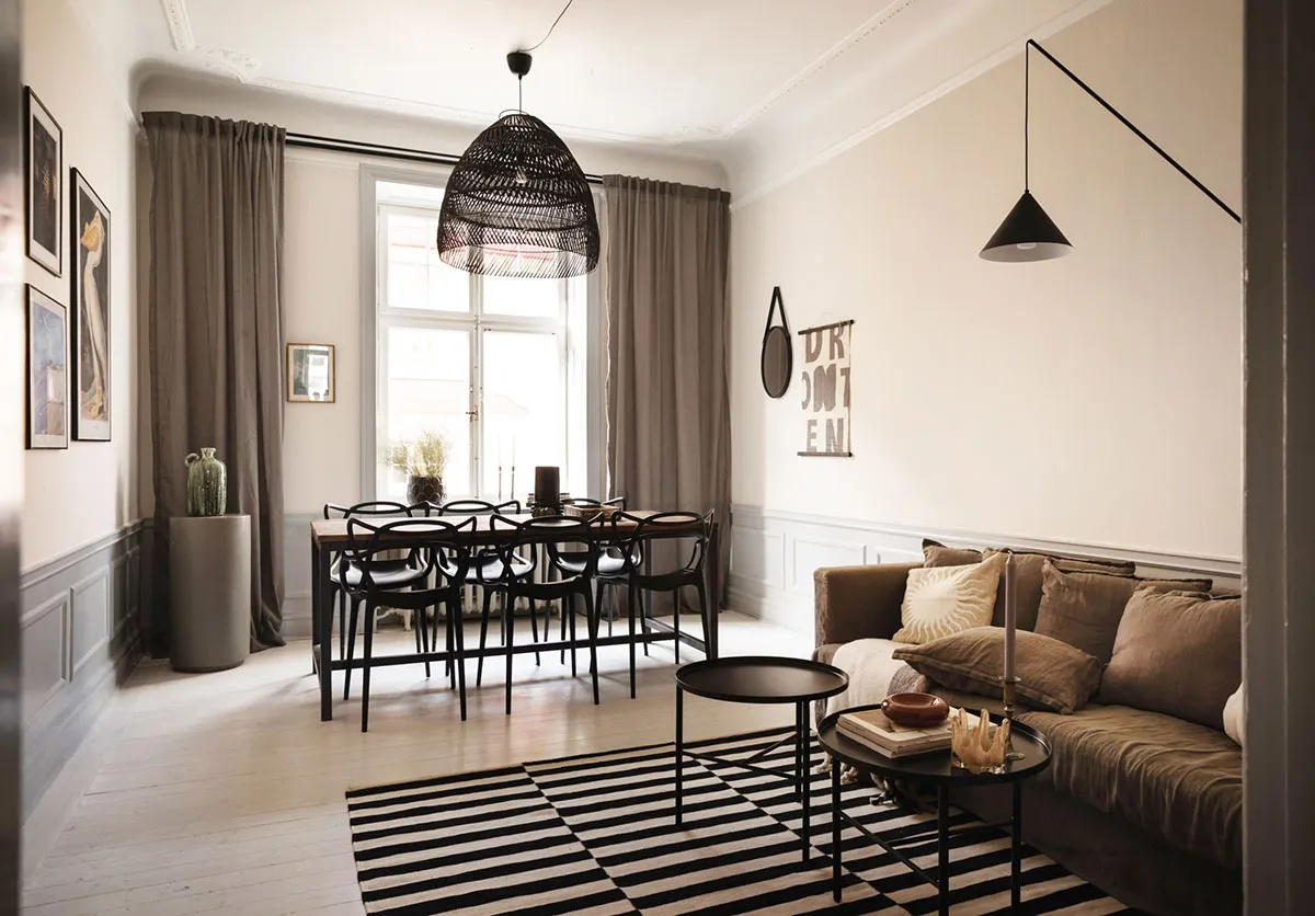 Розкішне простір з високими стелями та арковими вікнами — ефектна, але не єдина фішка цієї квартири в Стокгольмі.