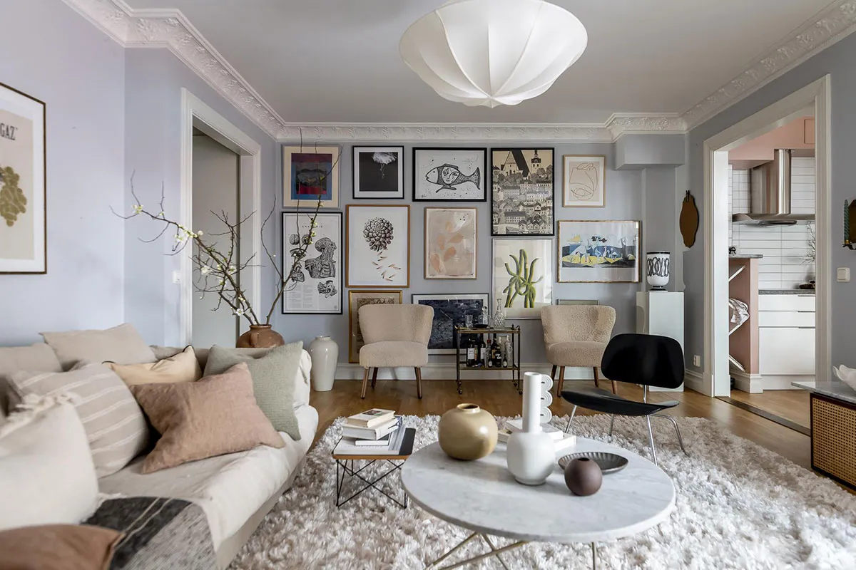 Настінна галерея та приємні прохолодні відтінки: квартира в Гетеборзі (63 кв. м)