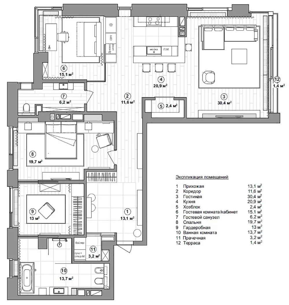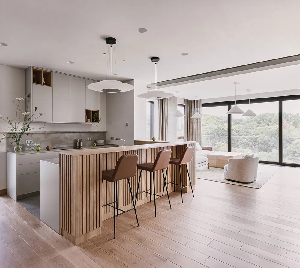 Коли власник цих сучасних апартаментів у Києві запросив дизайнера Аліну Юдину оформити інтер'єр, у нього було лише одне бажання: «Не прикривати чудовий вид з вікна».