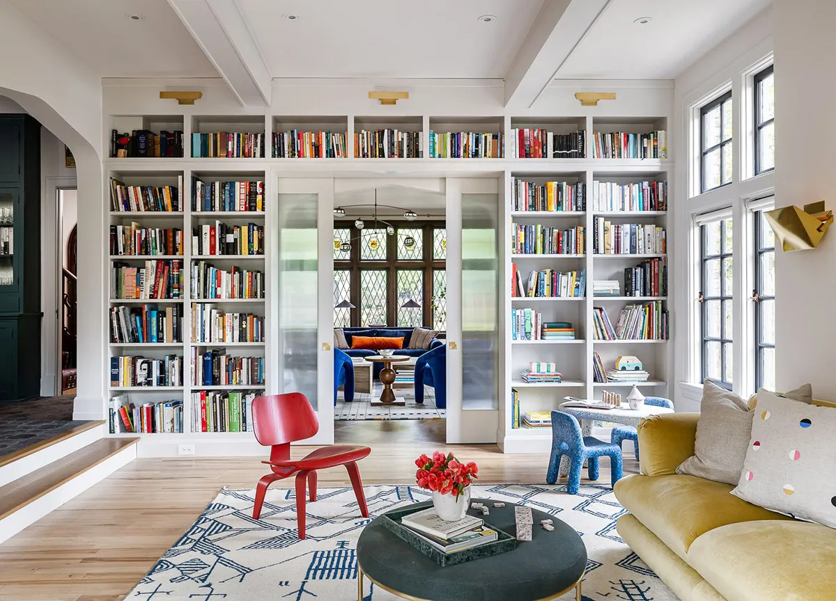 Велика бібліотека та яскравий декор у дизайні історичного будинку в Кентуккі