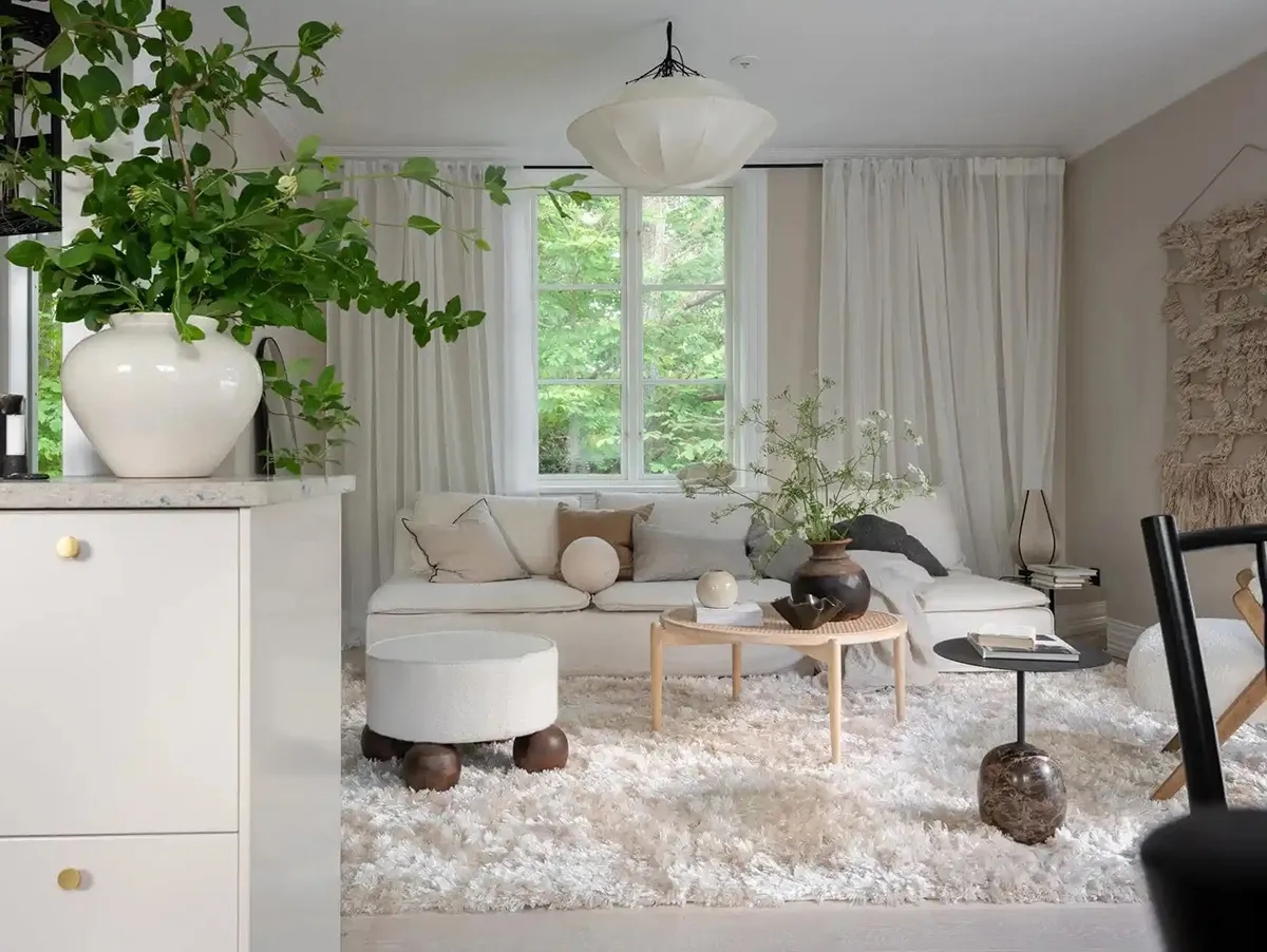 М'який і елегантний сучасний інтер'єр підміської дачі в Швеції