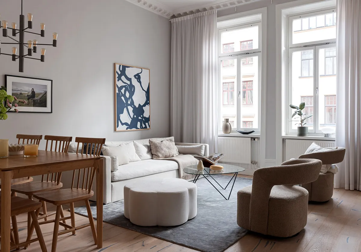 Приємний скандинавський інтер'єр у нейтральних тонах (68 кв. м)