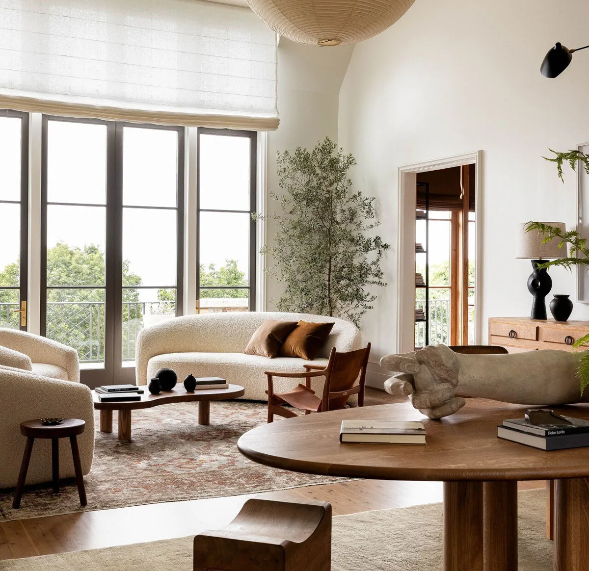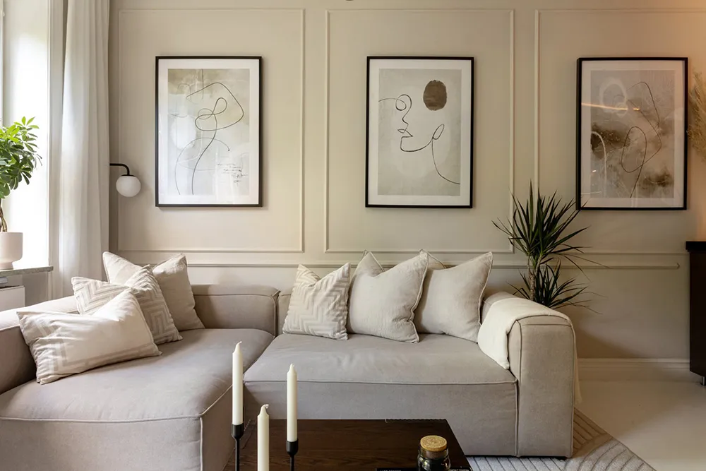 М’який сучасний інтер’єр із колекцією мистецьких виробів у Алабамі