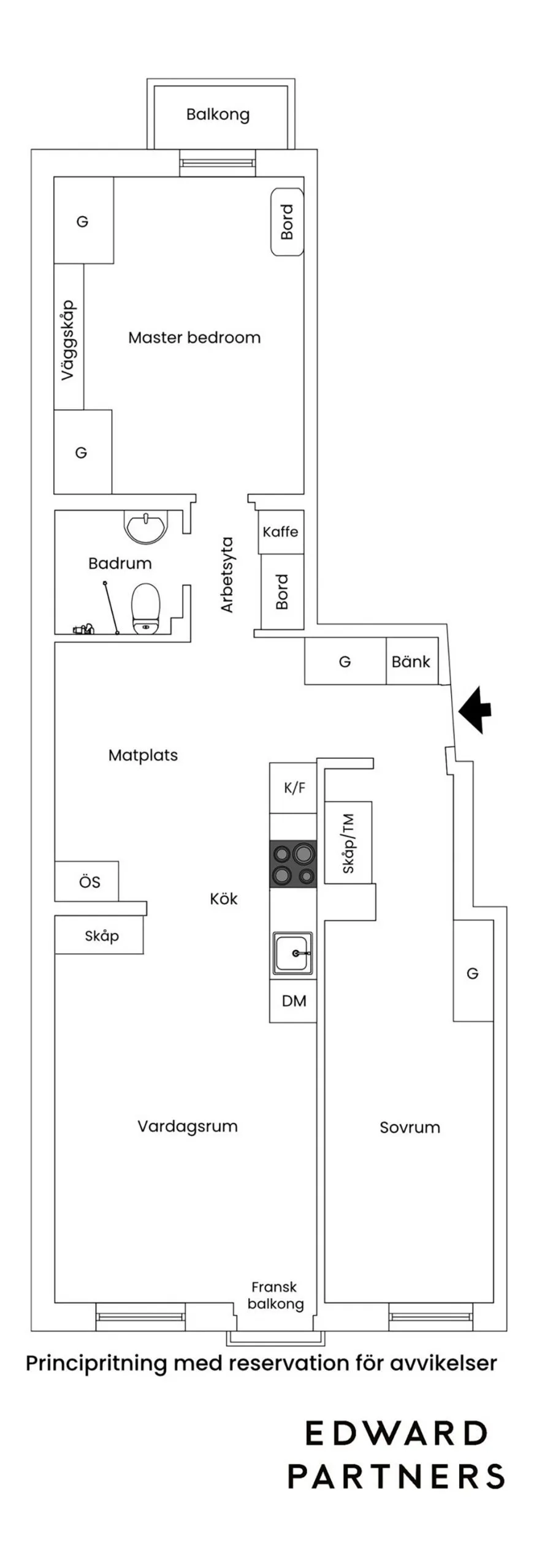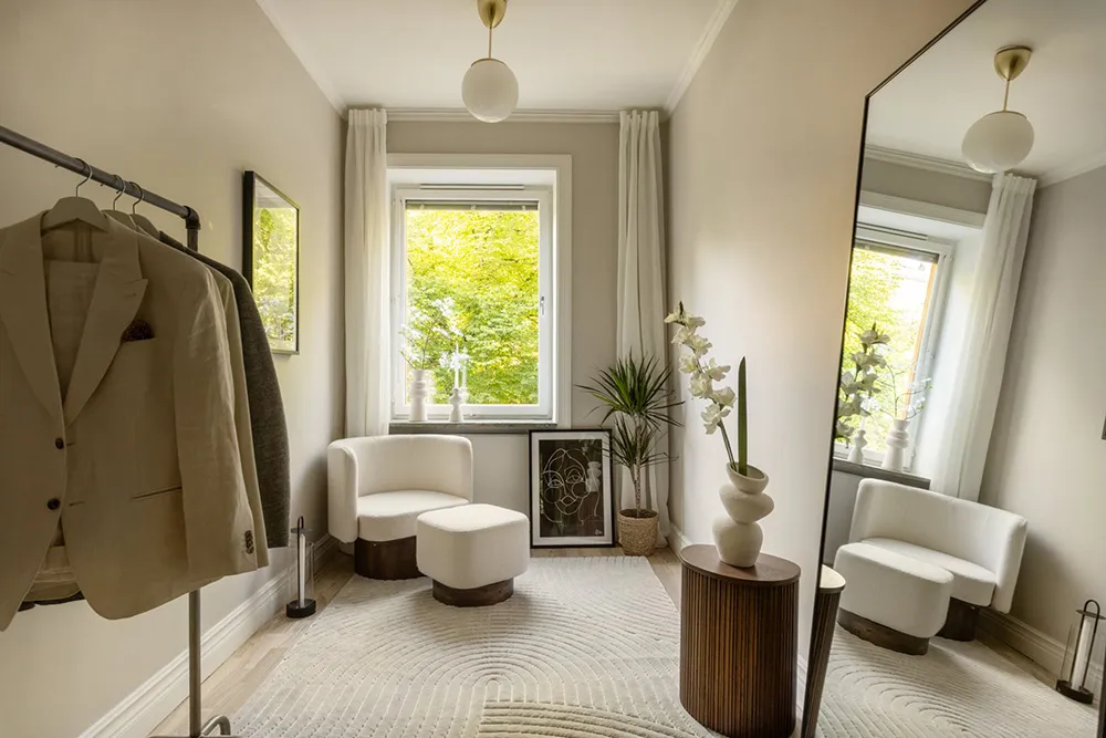 У цієї трикімнатної квартири в Стокгольмі досить неудобна планування — кімнати по формі довгі, але вузькі, що наклала певні обмеження на дизайн.