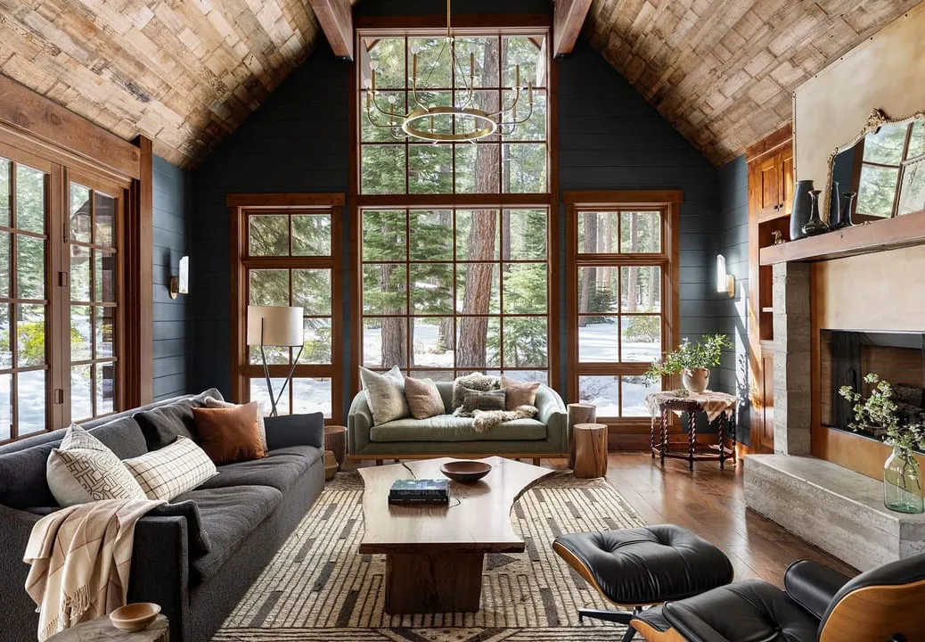 Уютні атмосферні інтер'єри дачі на озері Тахо