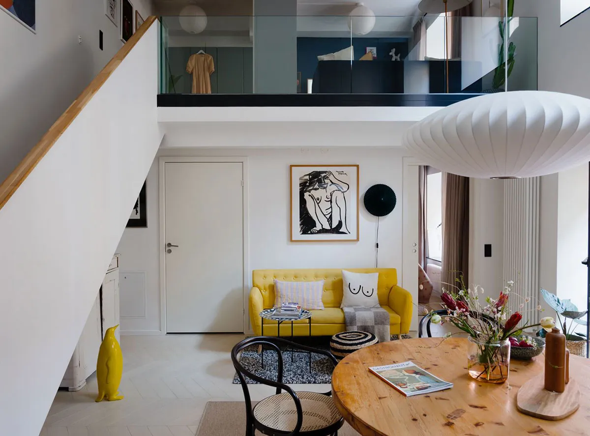 Яскрава квартира з антресоллю в колишній хлібній у Стокгольмі (75 м²)