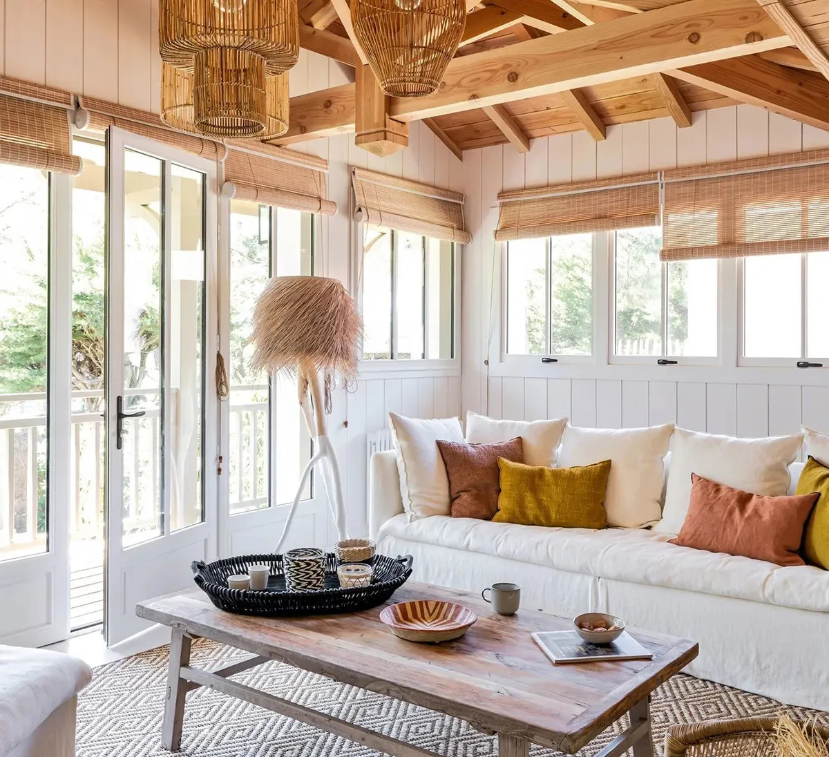 Теплий природний інтер'єр літнього будиночка на Лазурному березі