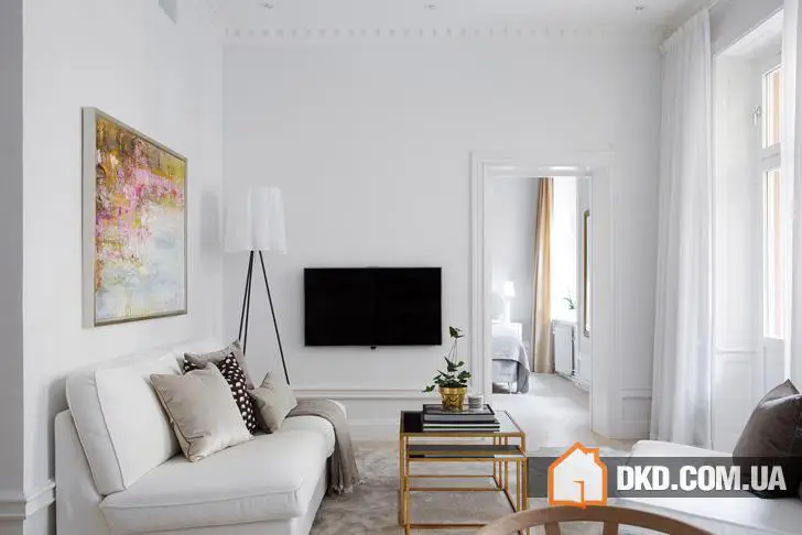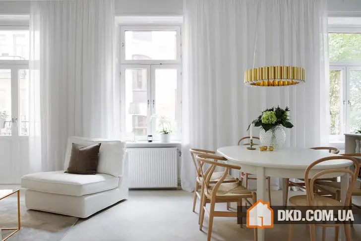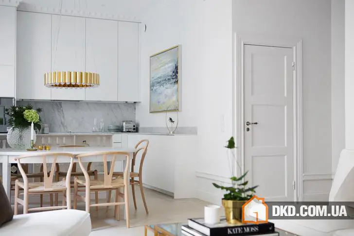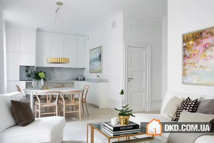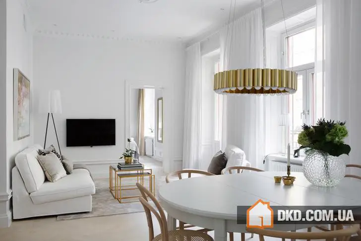 Це заблуждення, що Скандинавія — це виключно аскетичні інтер'єри. І сьогодні, на прикладі квартири у 64 кв. м., можна розглянути, як вписати у скандинавський інтер'єр золоті елементи.